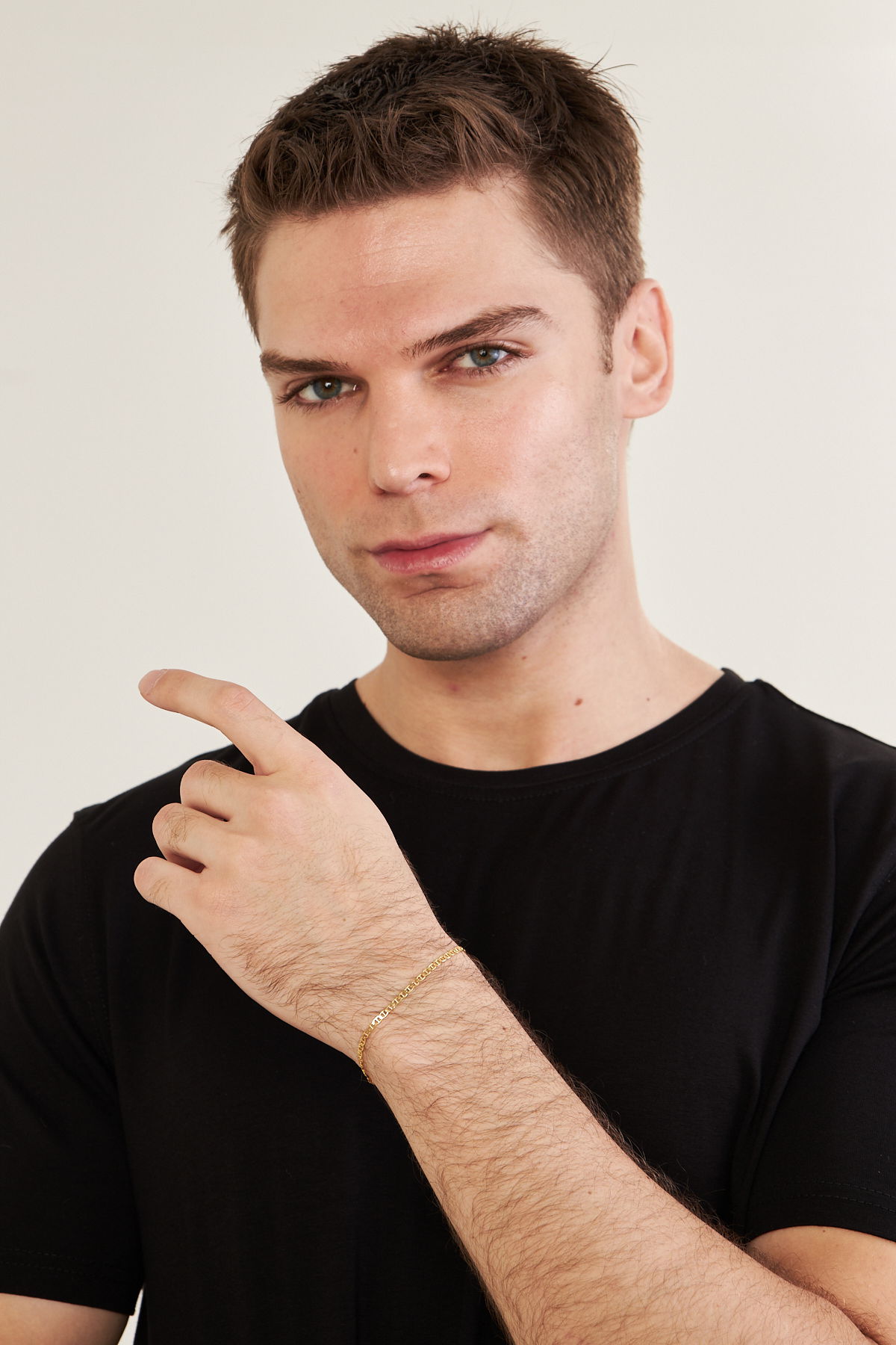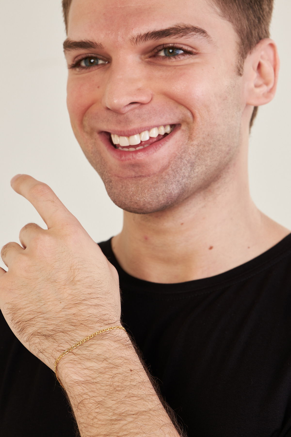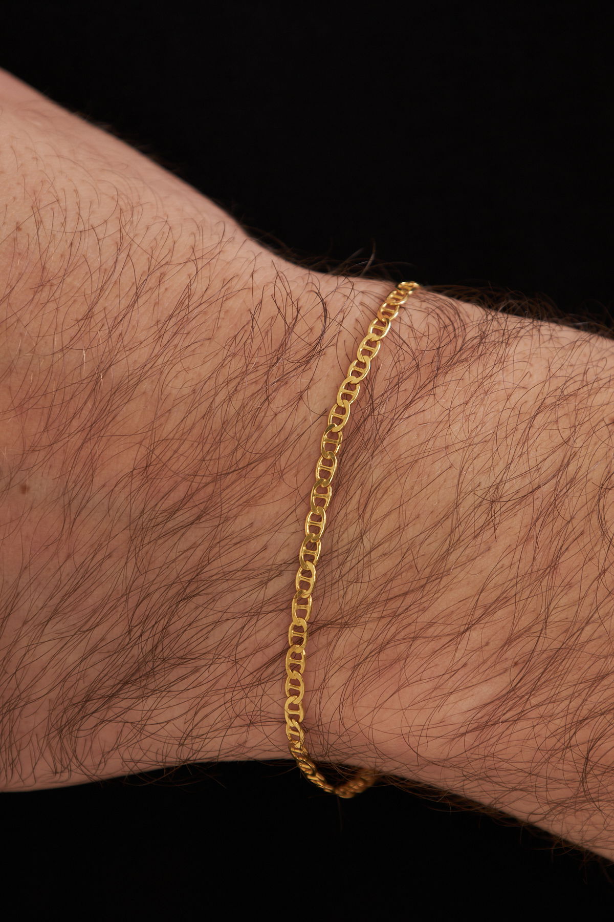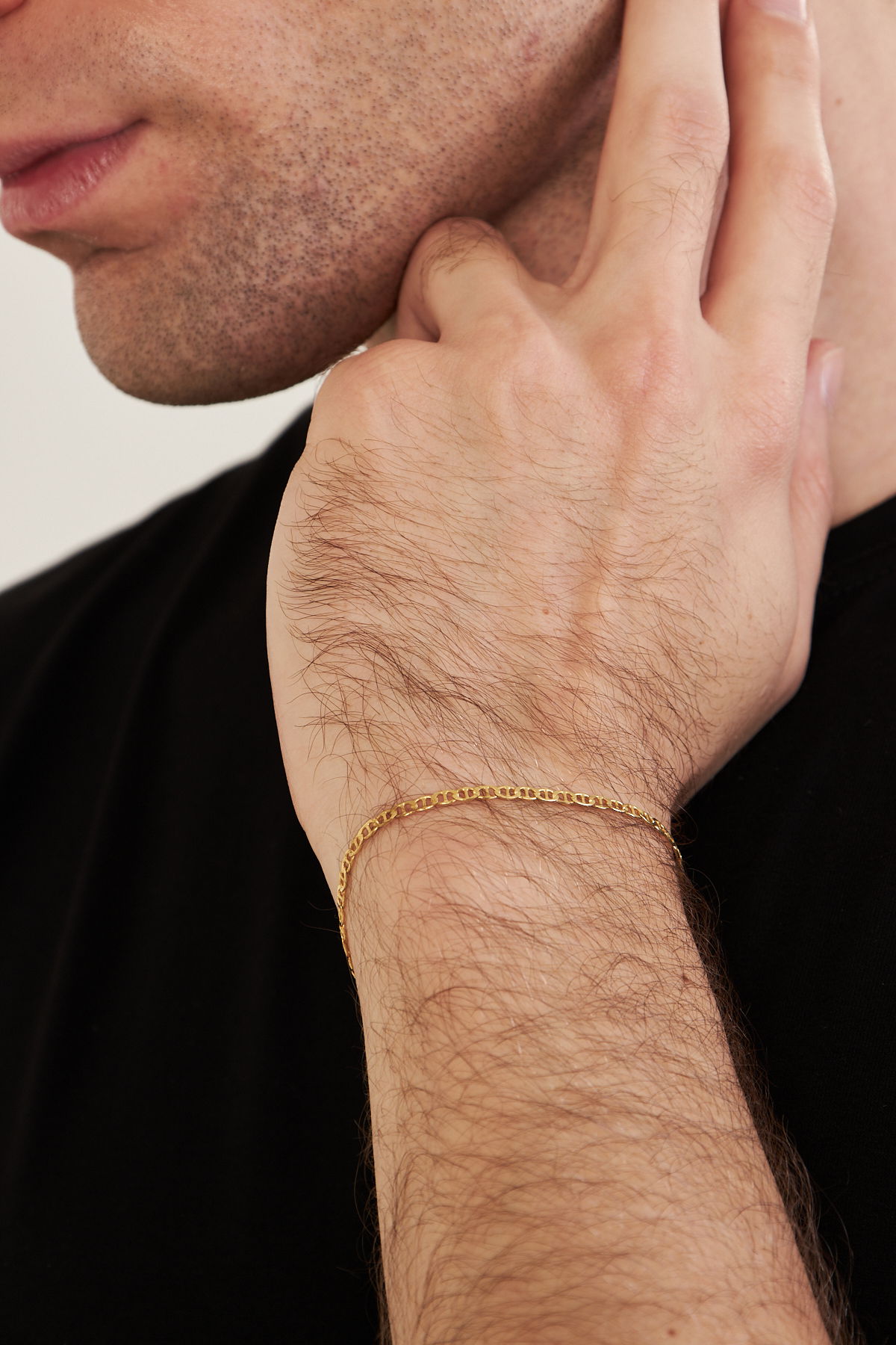 18K Altın Kaplama 3mm Barlı 925 Ayar Gümüş Erkek Zincir Bileklik VEB5290