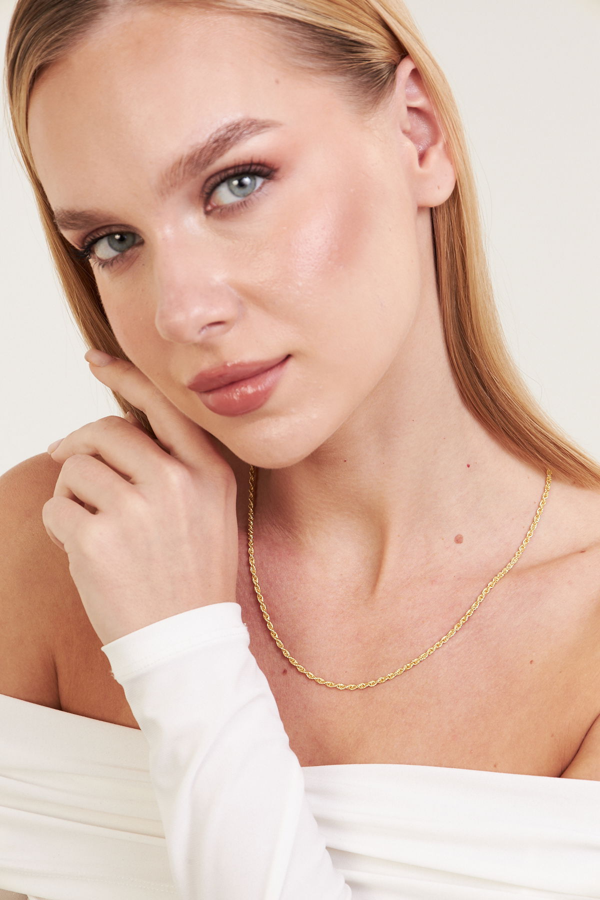 18K Altın Kaplama 2,5mm Halat 925 Ayar Gümüş Kadın Zincir Kolye VKK-4502 - Ventino