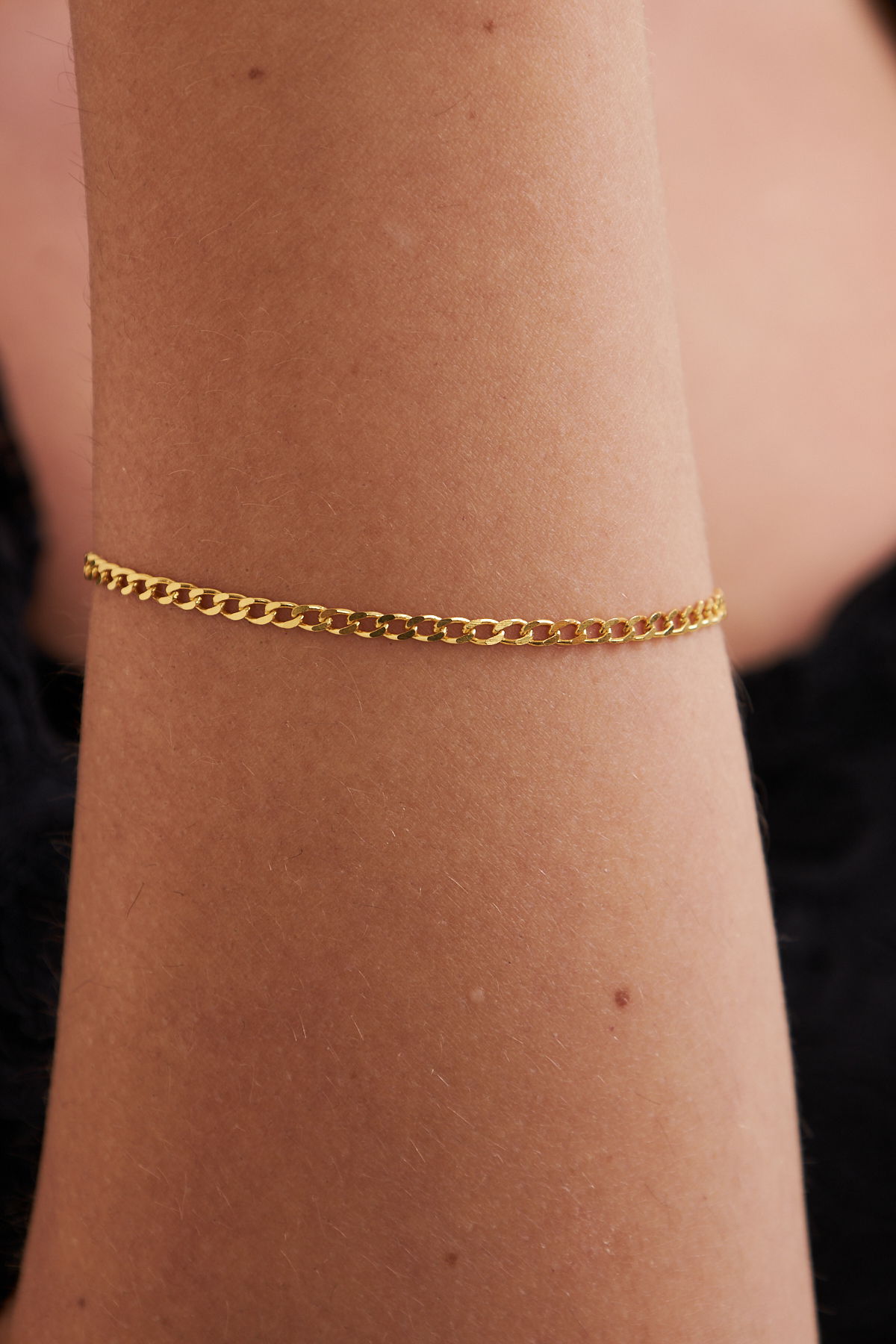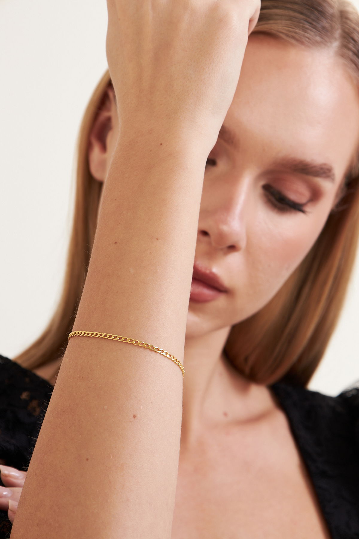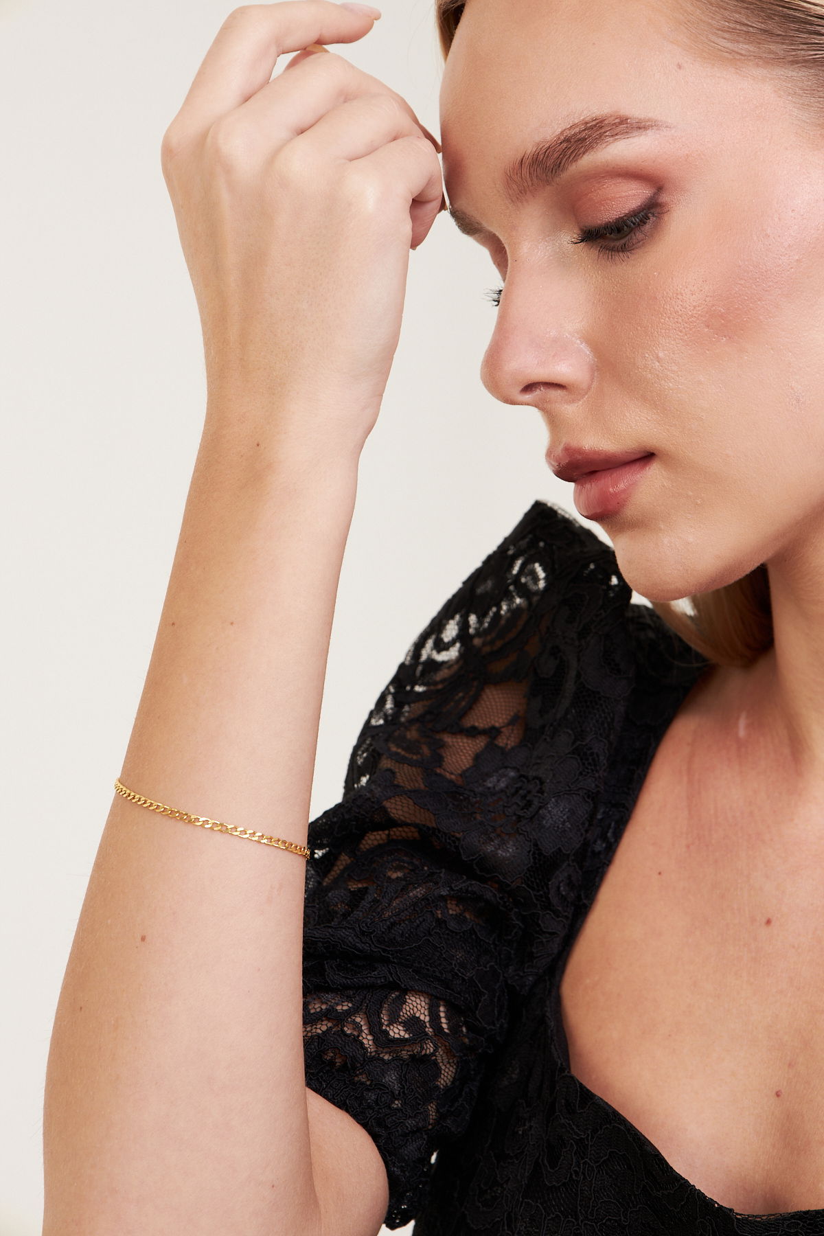 Bileğinizde ışıltıyı ve zarafeti bir arada yaşayın: 18K Altın Kaplama 3mm Gurmet Zincir Bileklik, klasik Gurmet tasarımını modern bir dokunuşla buluşturuyor. İnce ama dikkat çekici yapısı, günlük kullanımda ve özel anlarda stilinize sofistike bir detay ekler. 925 ayar gümüşten üretilmiş olan bu bileklik, 18K altın kaplaması sayesinde parlaklığını uzun süre korur. Minimalist ve estetik tasarımıyla tek başına göz alıcı bir görünüm sunarken, diğer bilekliklerle kombinlendiğinde modern ve katmanlı bir stil oluşturur. Sevdiklerinize anlamlı bir hediye vermek veya kendi tarzınızı ön plana çıkarmak için ideal bir seçim.