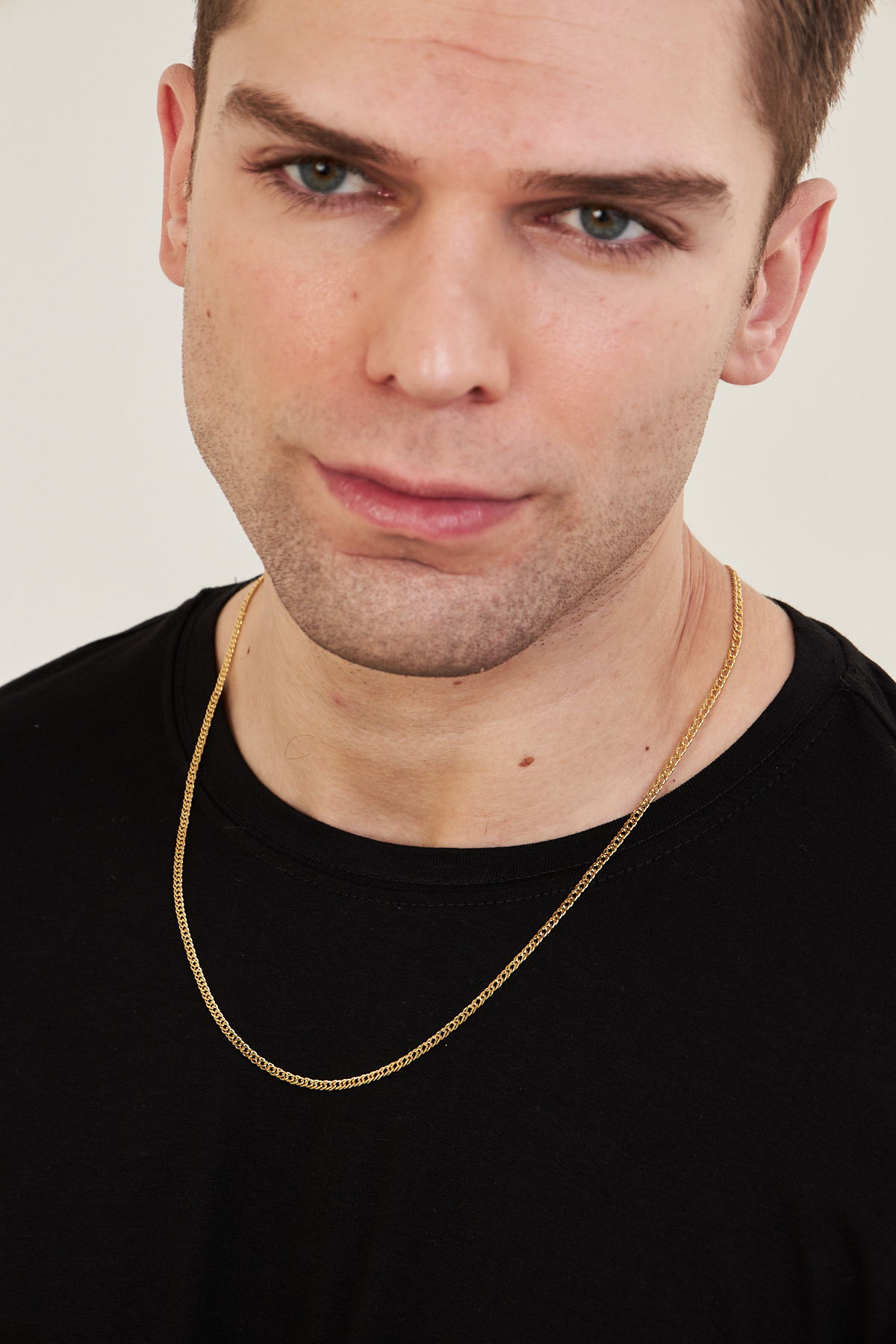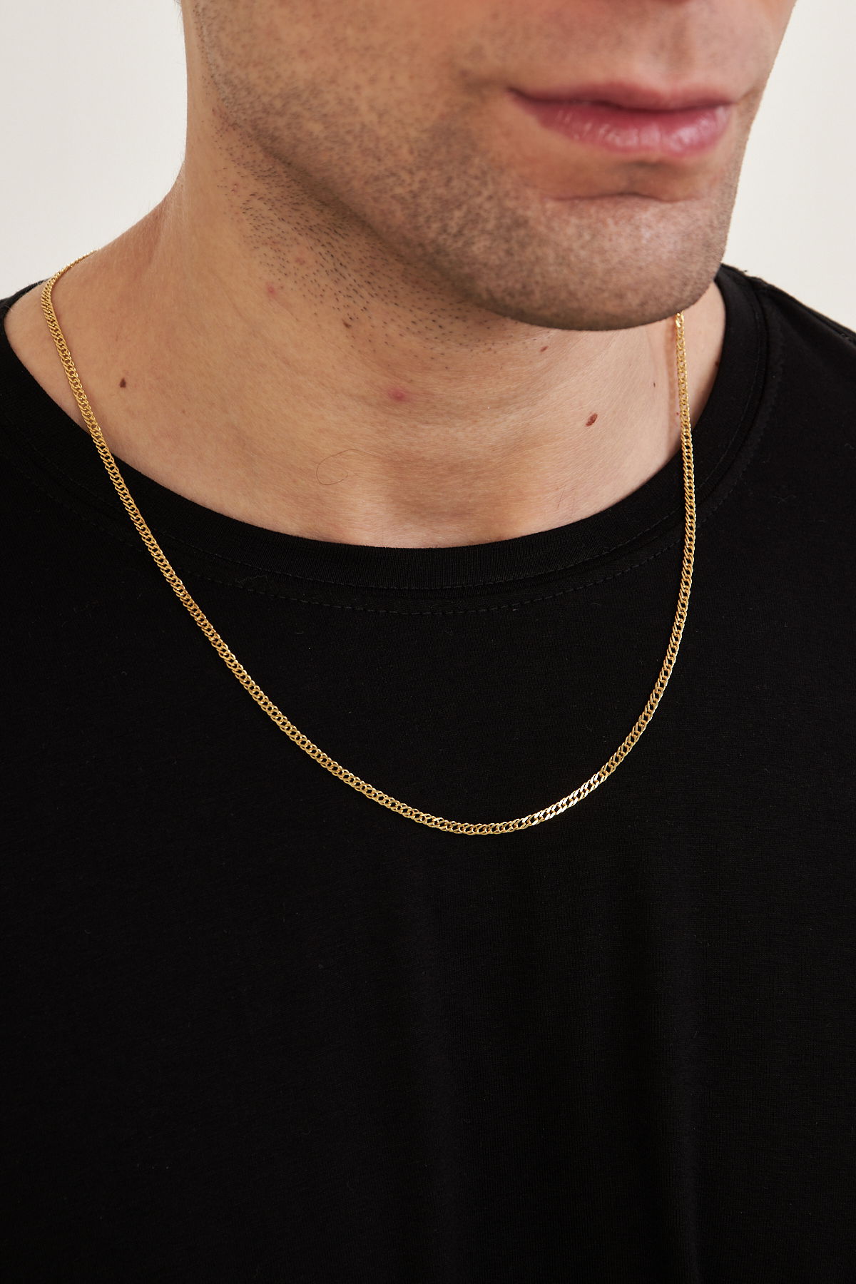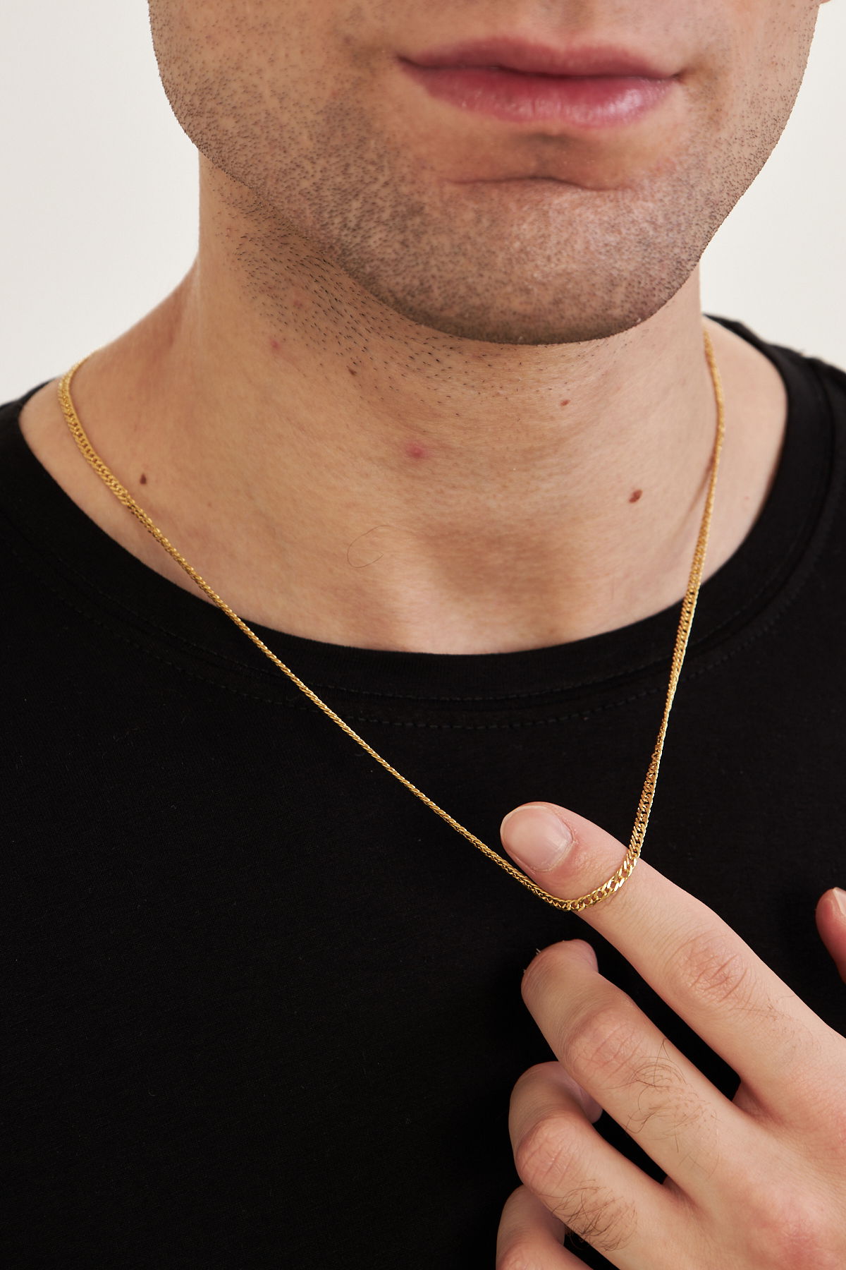 18 K Altın Kaplama 2mm Rambo 925 Ayar Gümüş Zincir Kolye Vek-3102