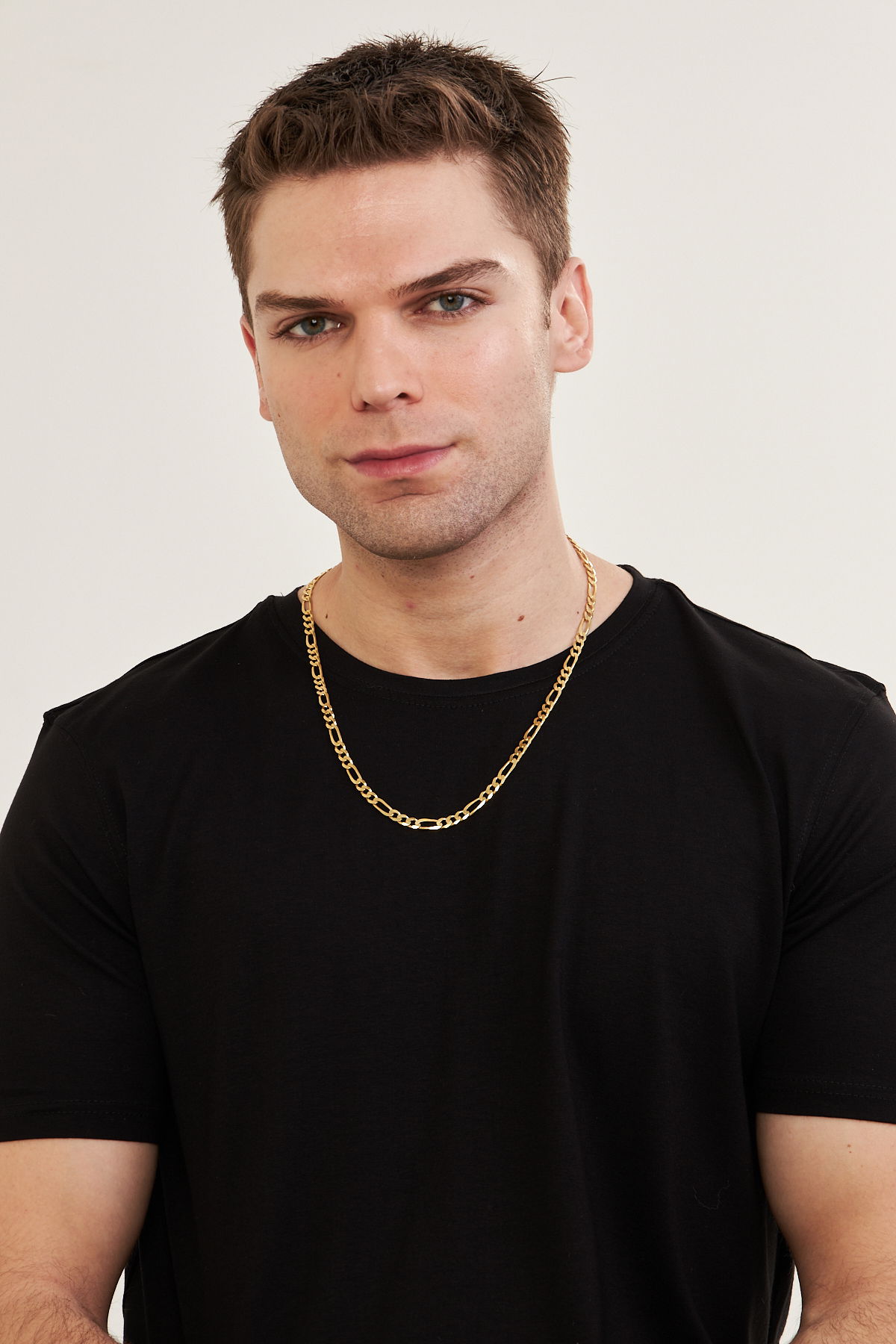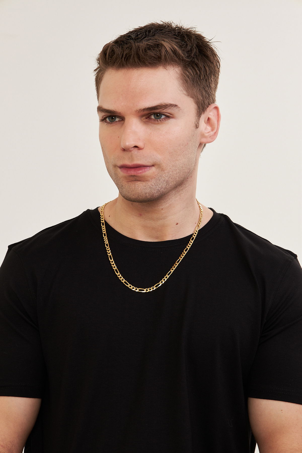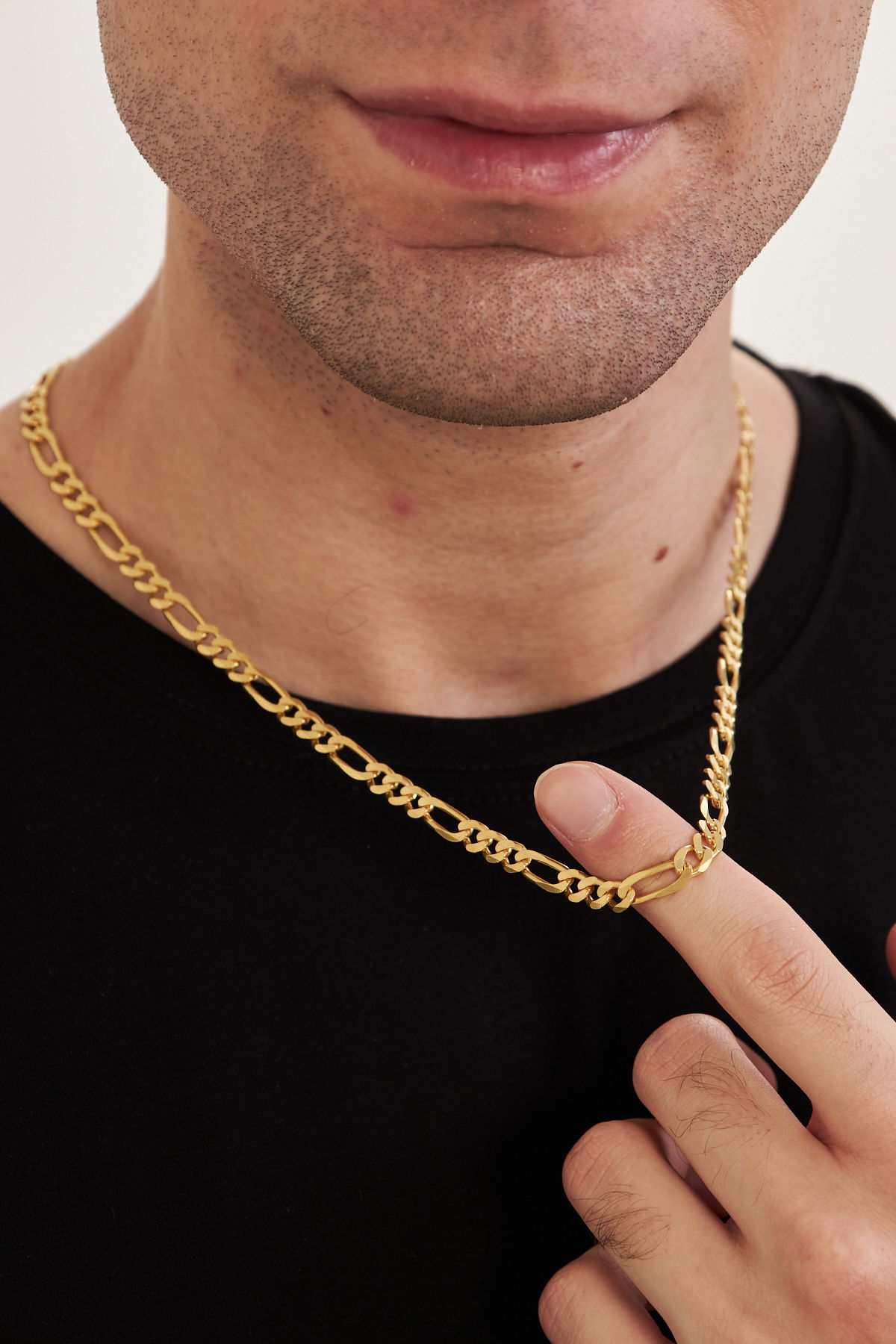 18K Altın Kaplama 5mm Figaro 925 Ayar Gümüş Erkek Zincir Kolye VEK3125