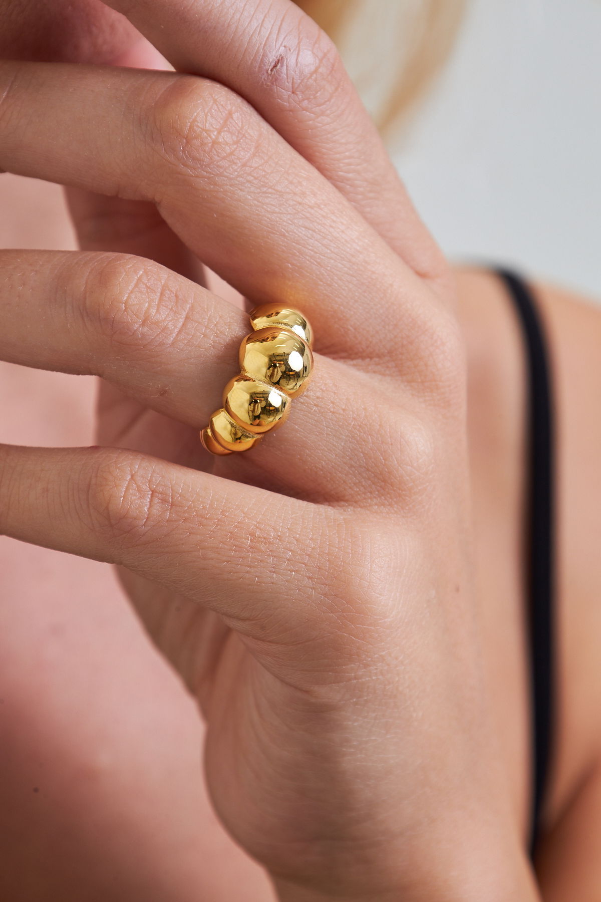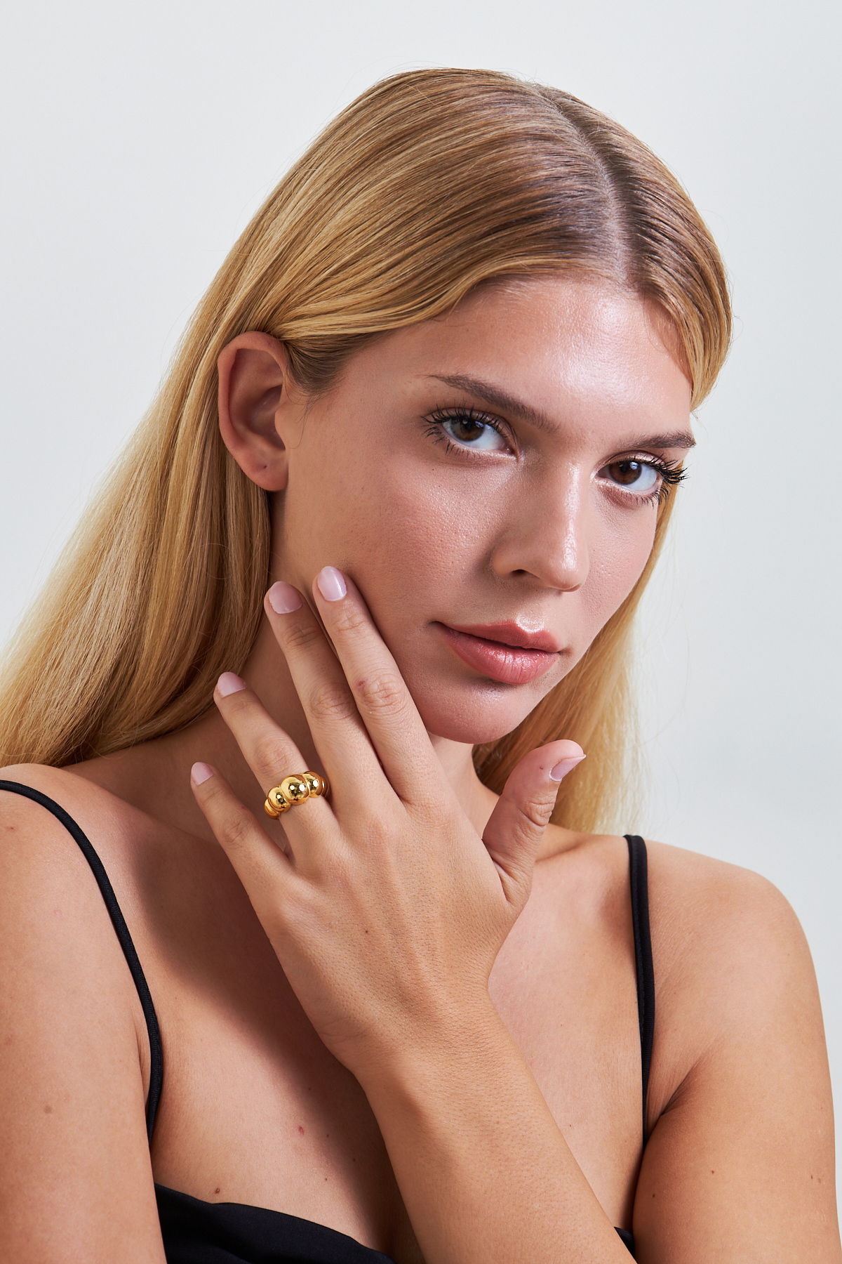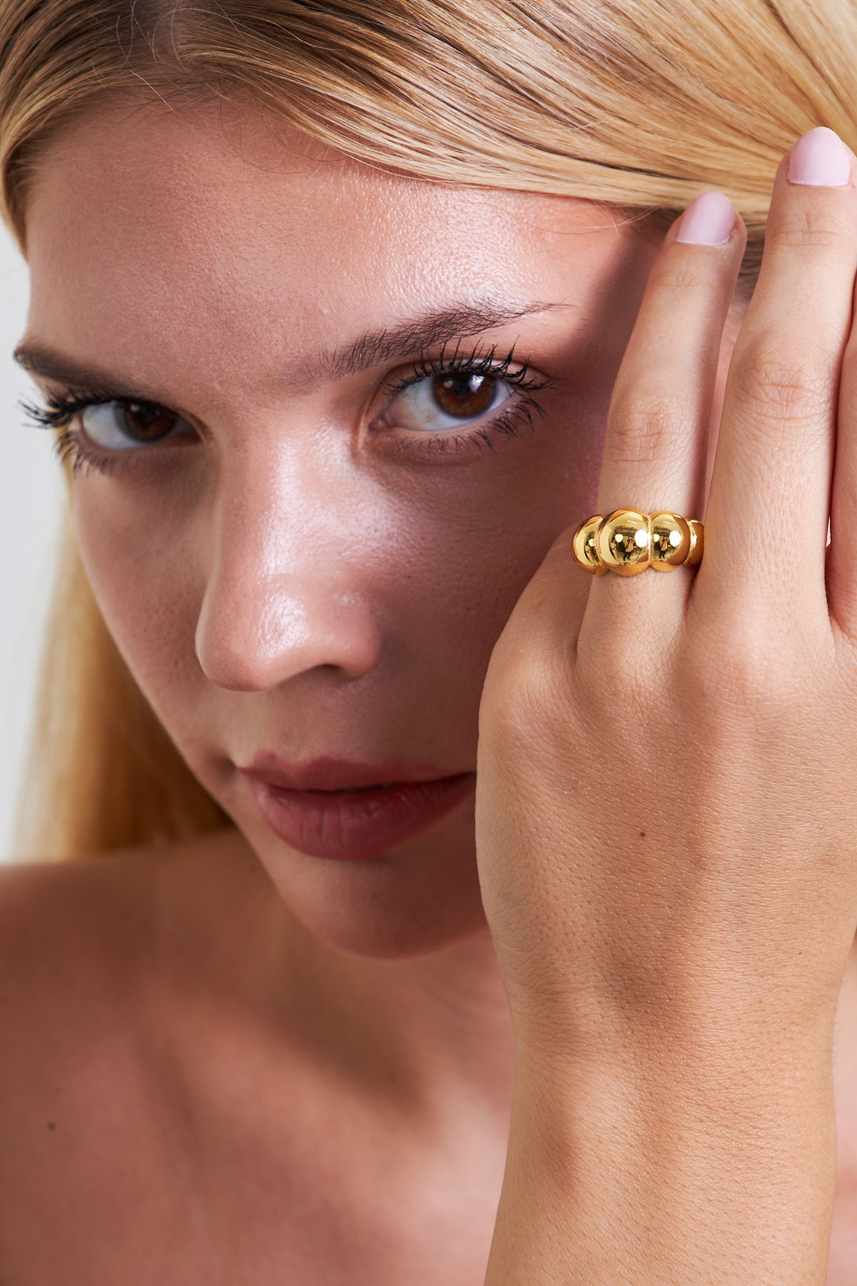 18K Altın Kaplama Bold Küre Form 925 Ayar Gümüş Kadın Yüzük VKY-2121 - Ventino