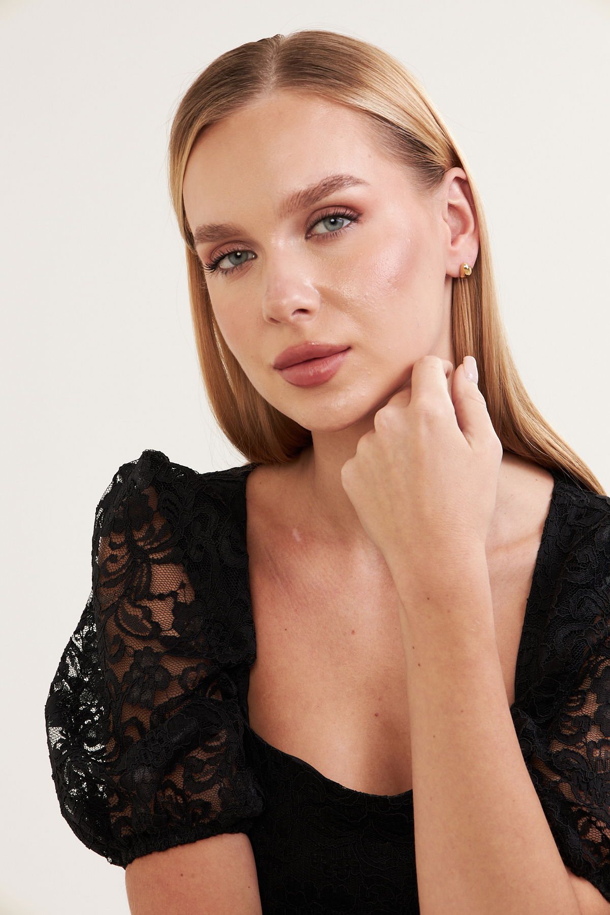 925 Ayar Gümüş Kadın Minimal Kalp Form Küpe VKP-7481 - Ventino