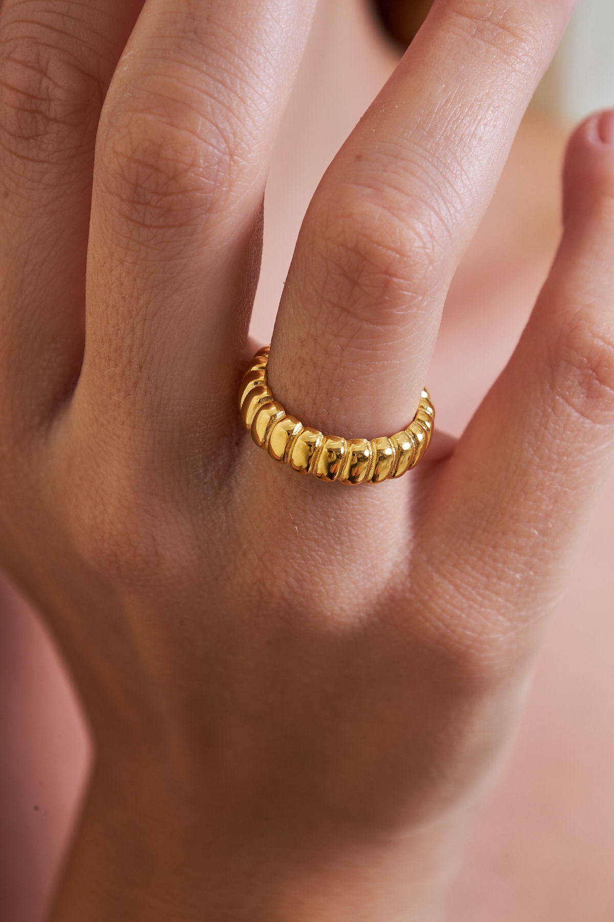 18K Altın Kaplama Kabartma Formlu 925 Ayar Gümüş Kadın Yüzük VKY-2113 - Ventino