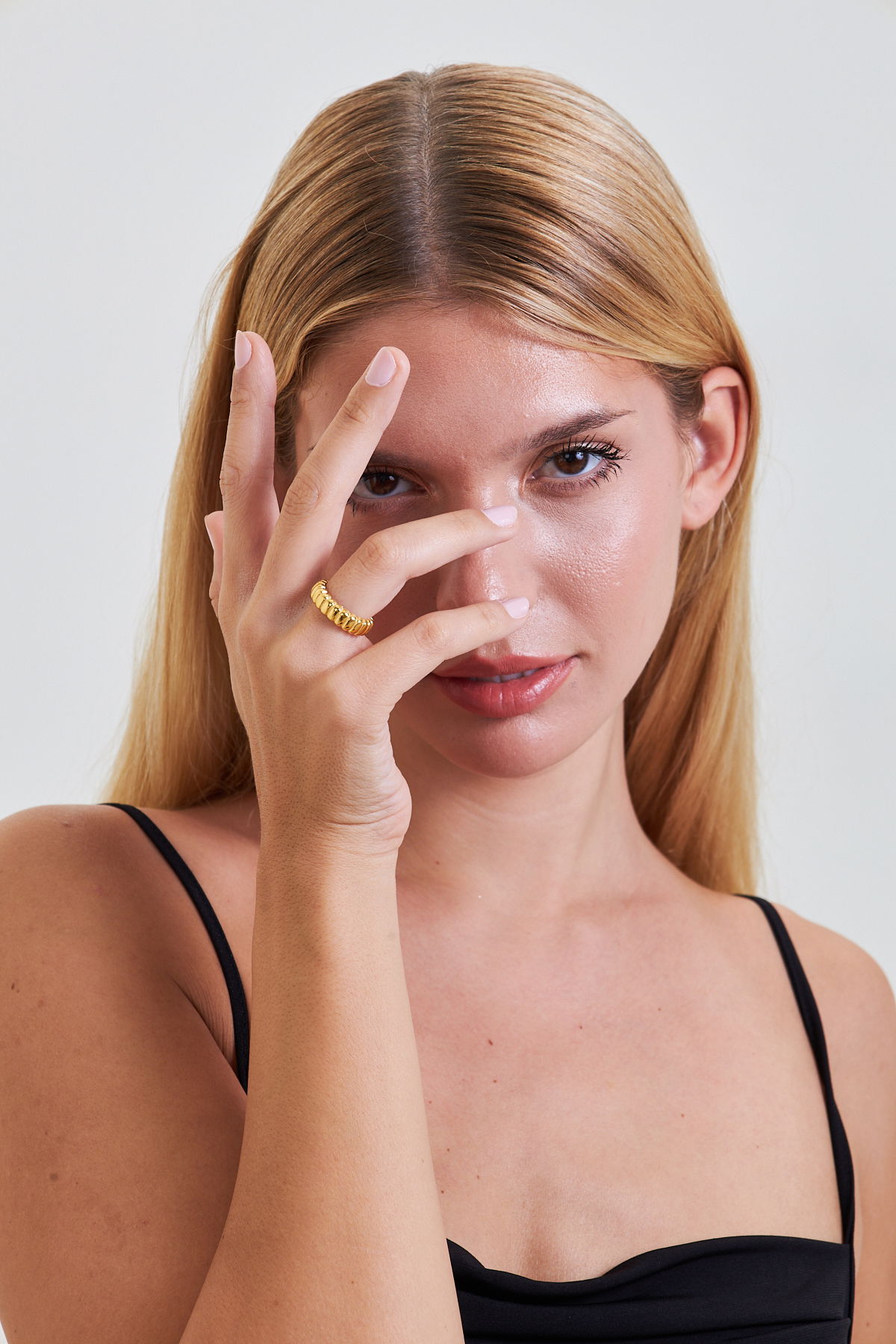 18K Altın Kaplama Elegan Model 925 Ayar Gümüş Minimal Kadın Yüzük VKY-2116 - Ventino