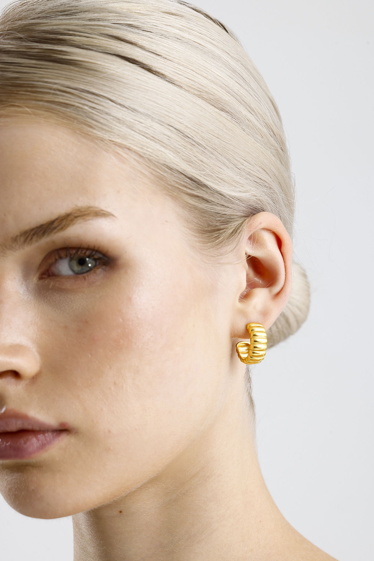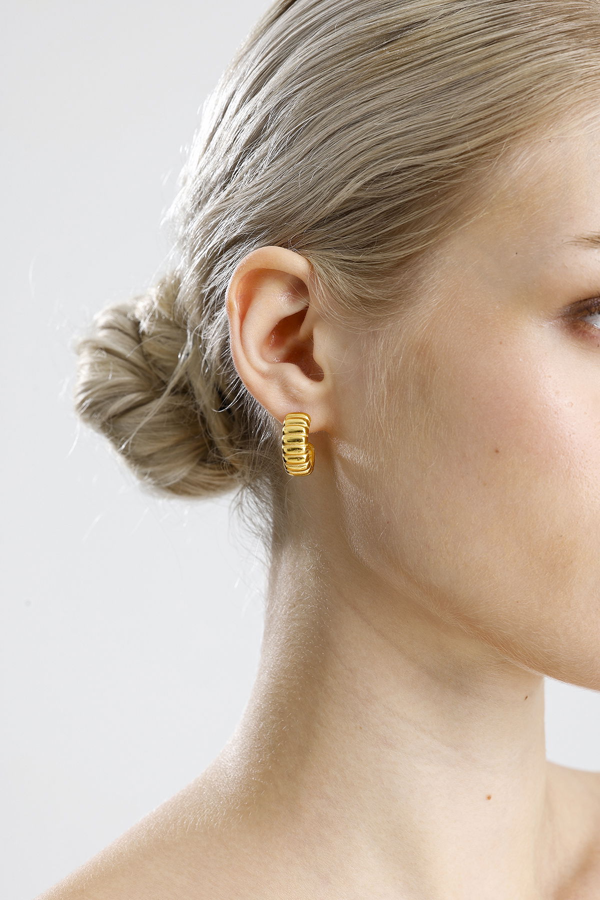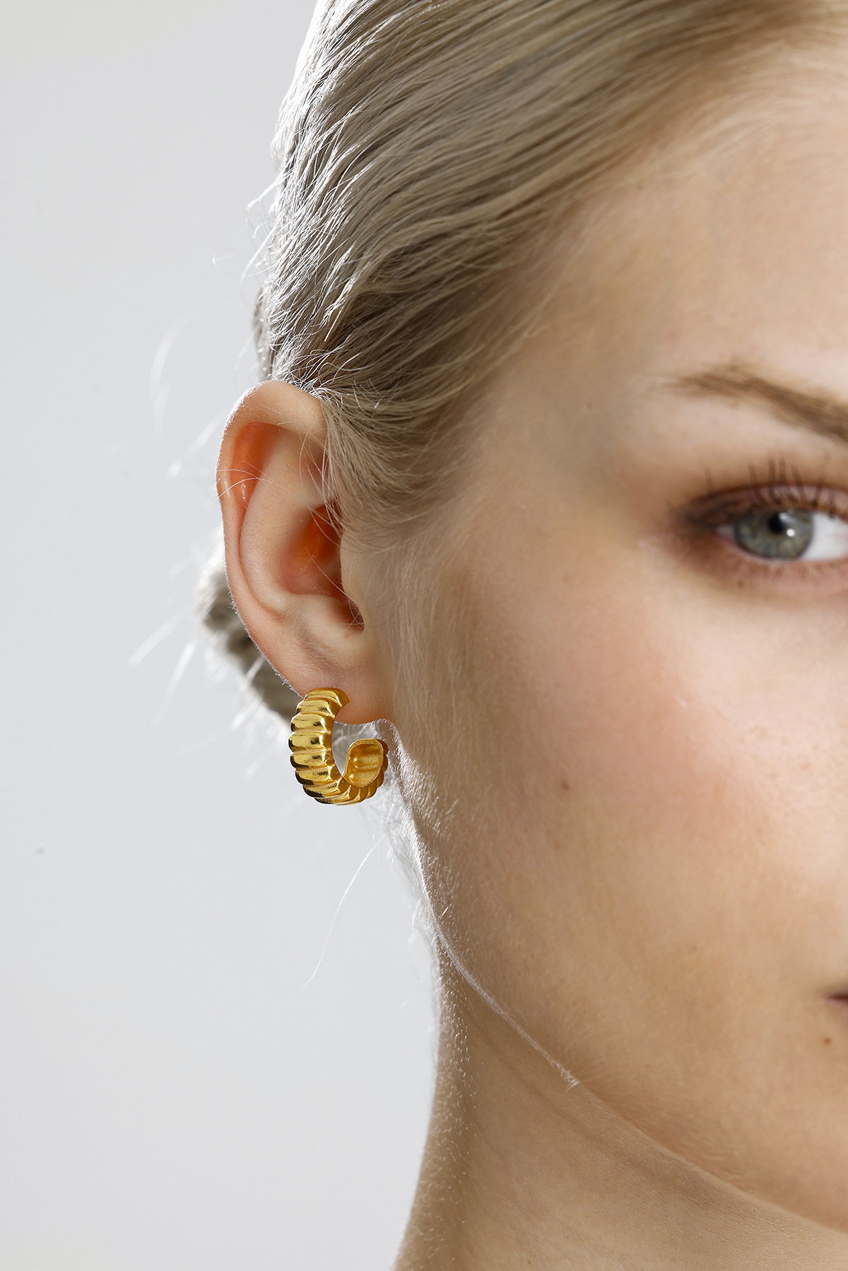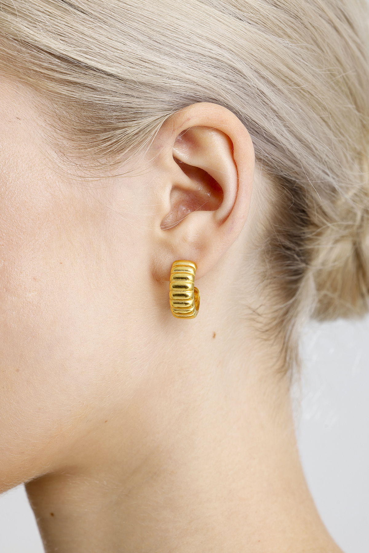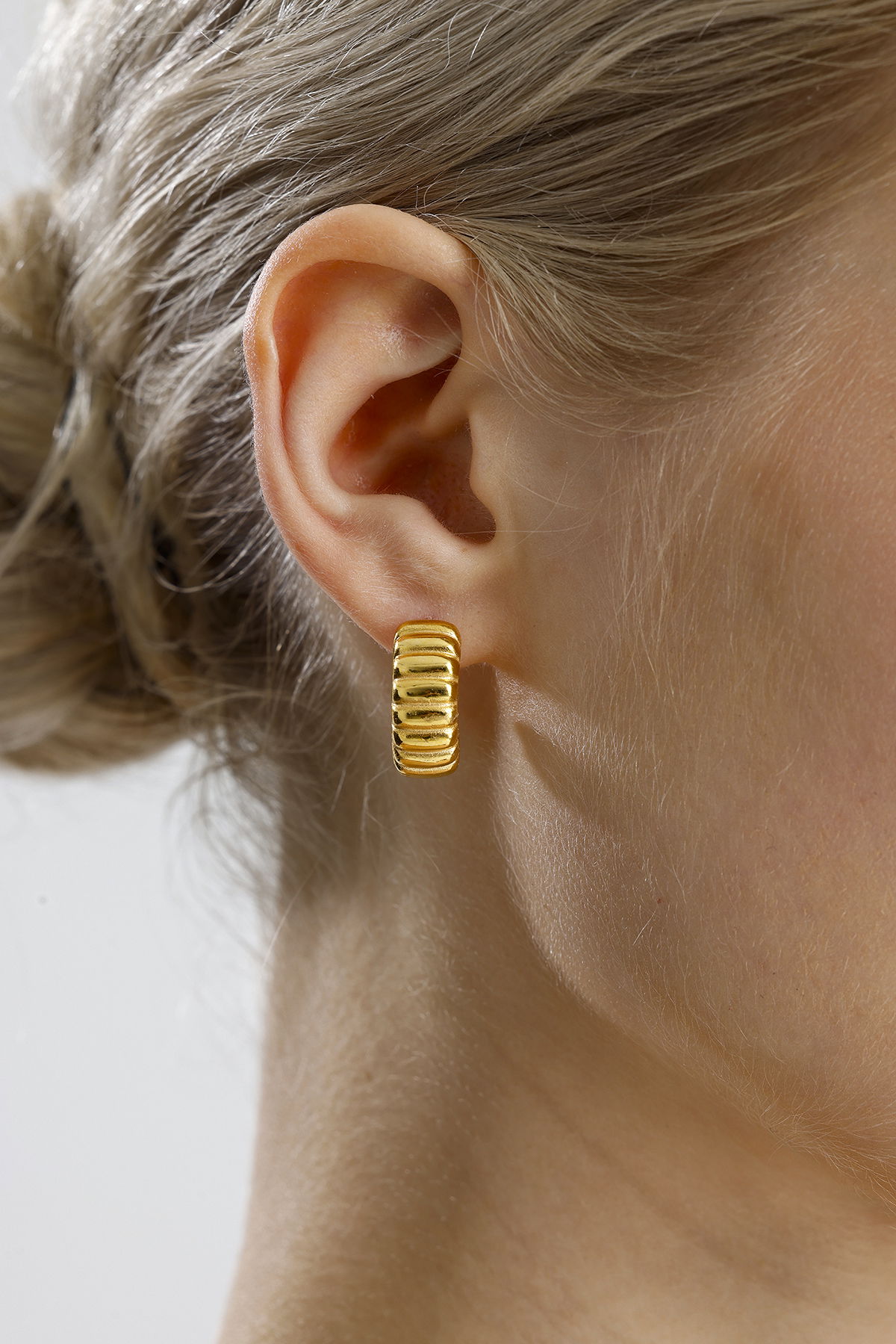 Gelince Haber VerModern ve dikkat çekici tasarımıyla öne çıkan bu küpe, yarım halka formu üzerine işlenmiş kabartmalı detaylarıyla farklı bir ışıltı sunuyor. Gümüş üzerine altın kaplama ile üretilmiş olup, hem günlük şıklığınızı tamamlar hem de özel davetlerde zarif bir aksesuar olarak öne çıkar. Hafif ve konforlu yapısı sayesinde gün boyu rahatlıkla kullanılabilir.
