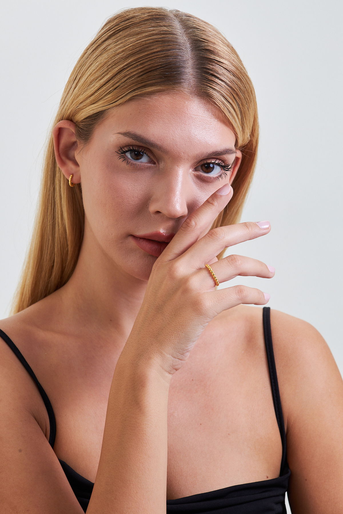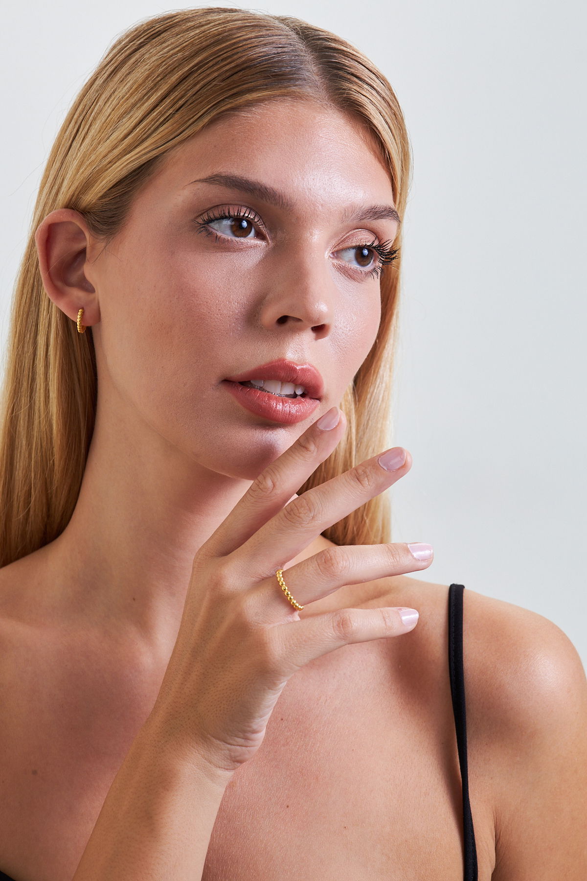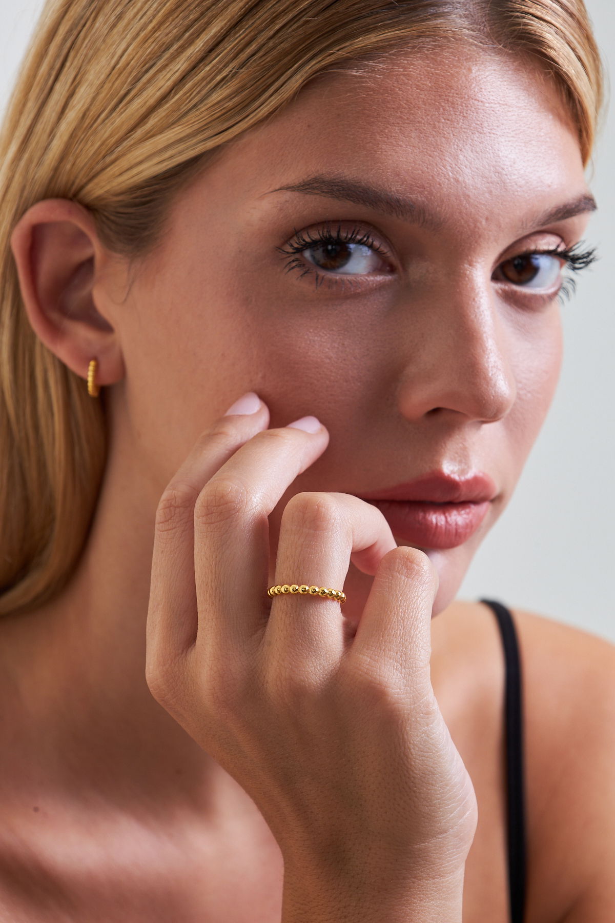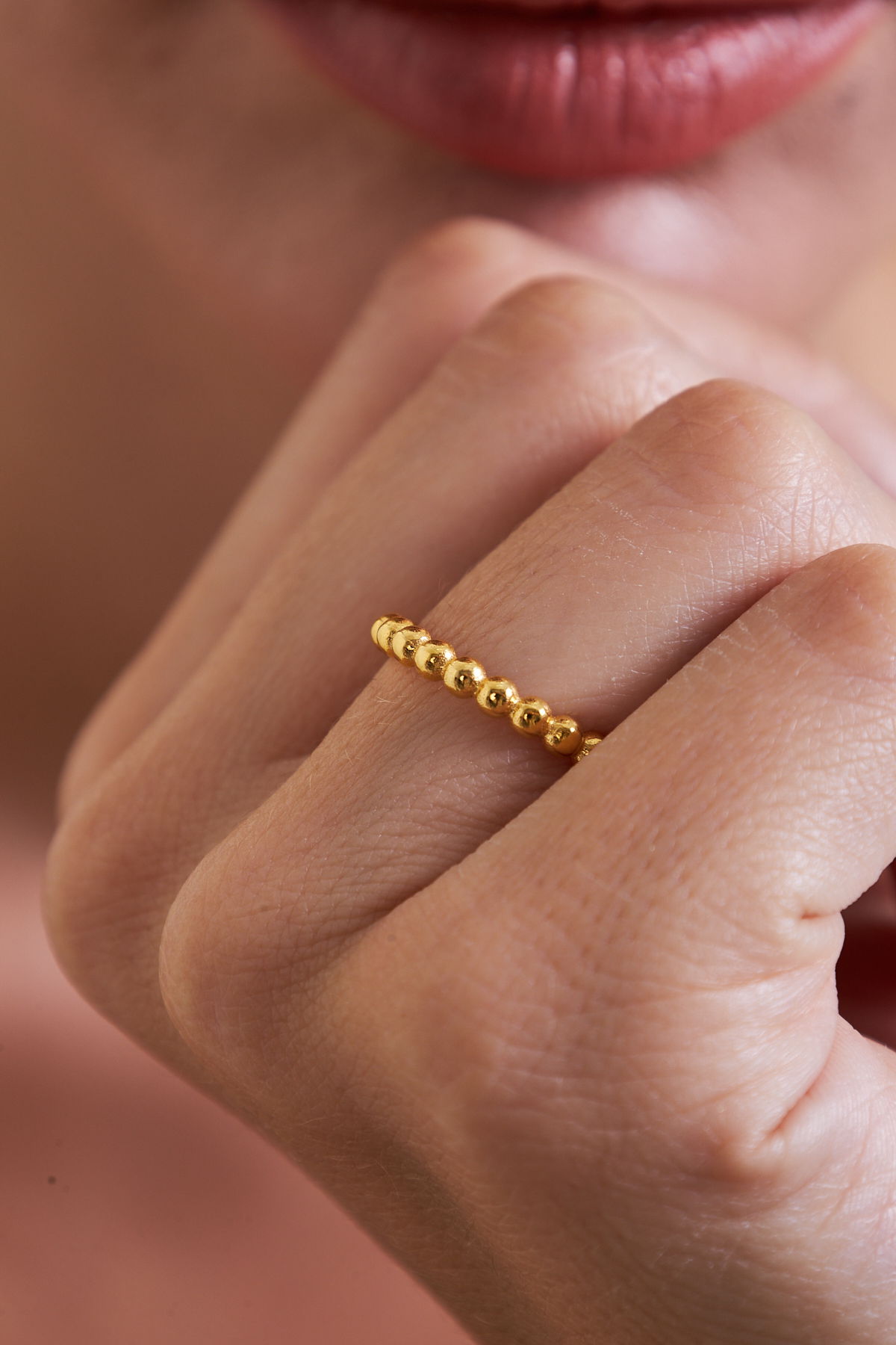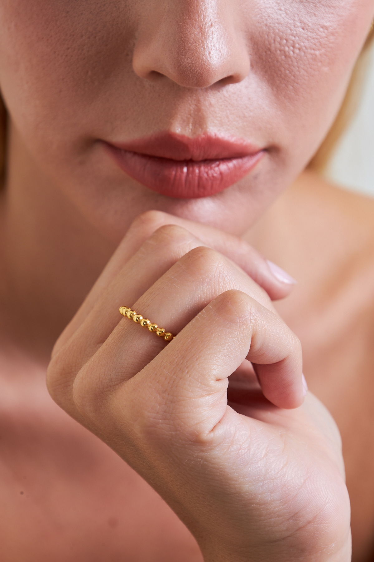 18K Altın Kaplama Küre Formlu Sıralı 925 Ayar Gümüş Kadın Yüzük VKY-2110 - Ventino