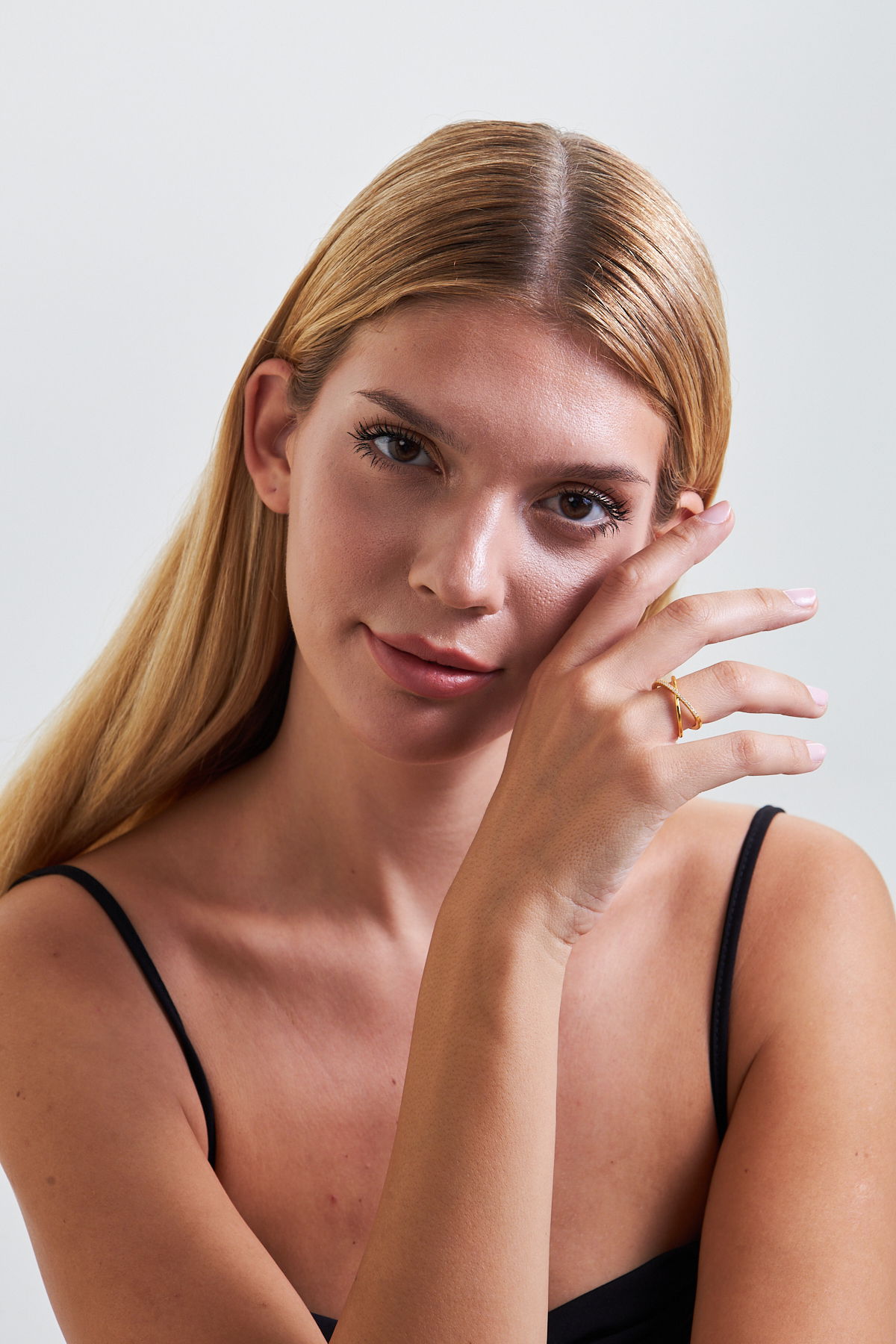 18K Altın Kaplama Taşlı İnce Kıvrımlı 925 Ayar Gümüş Kadın Yüzük VKY-2117 - Ventino