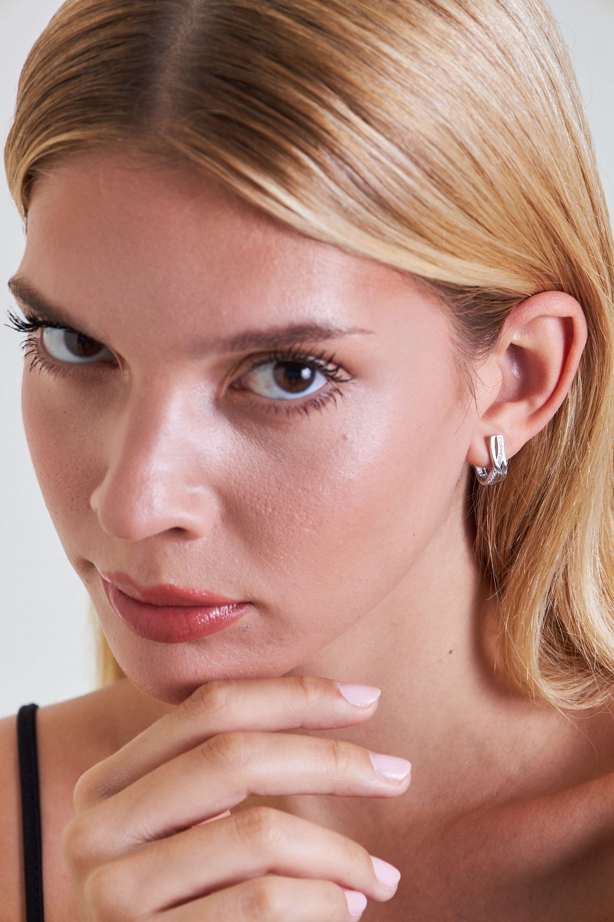 925 Ayar Gümüş Kadın Köşeli Minimal Küpe VKP-7478 - Ventino