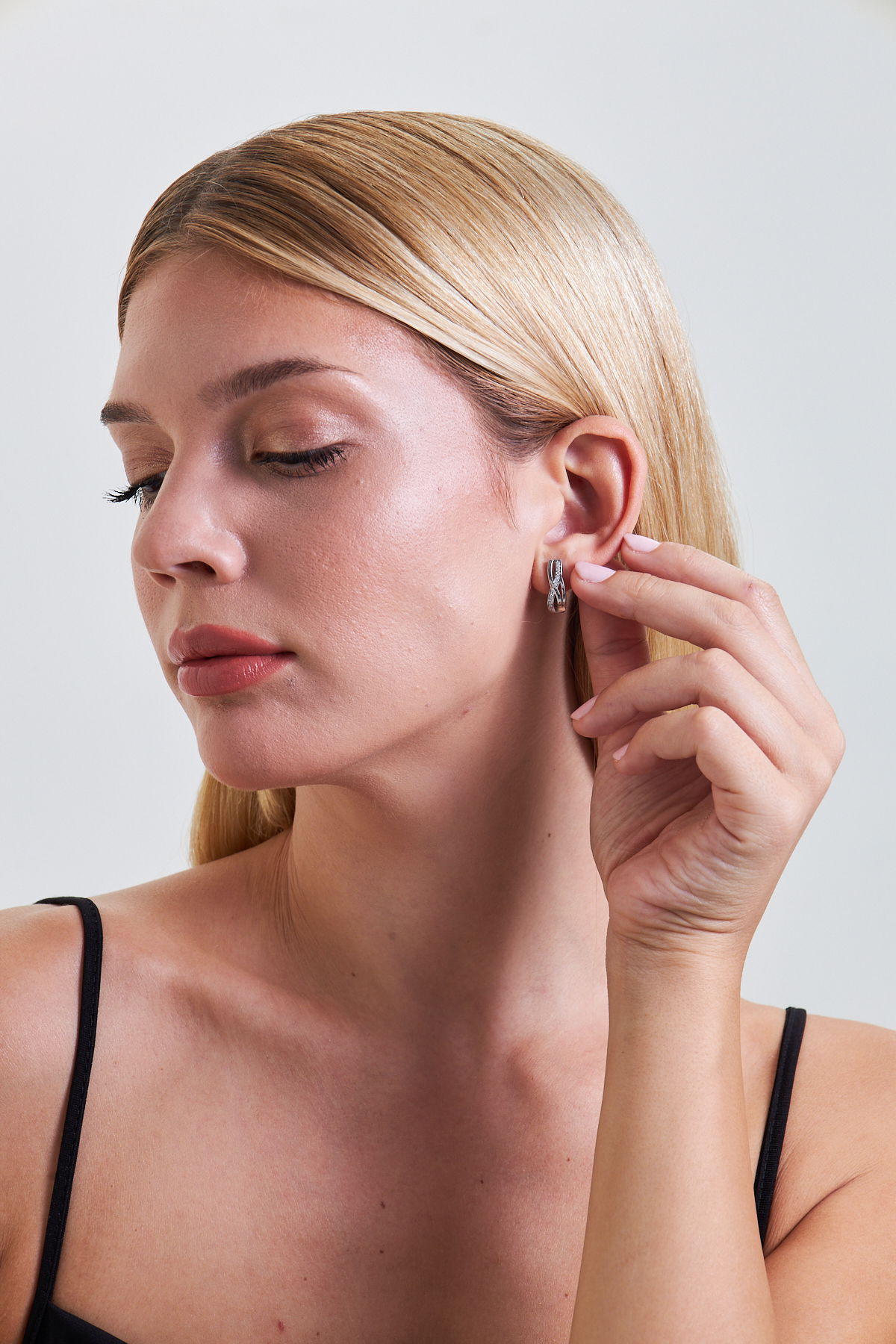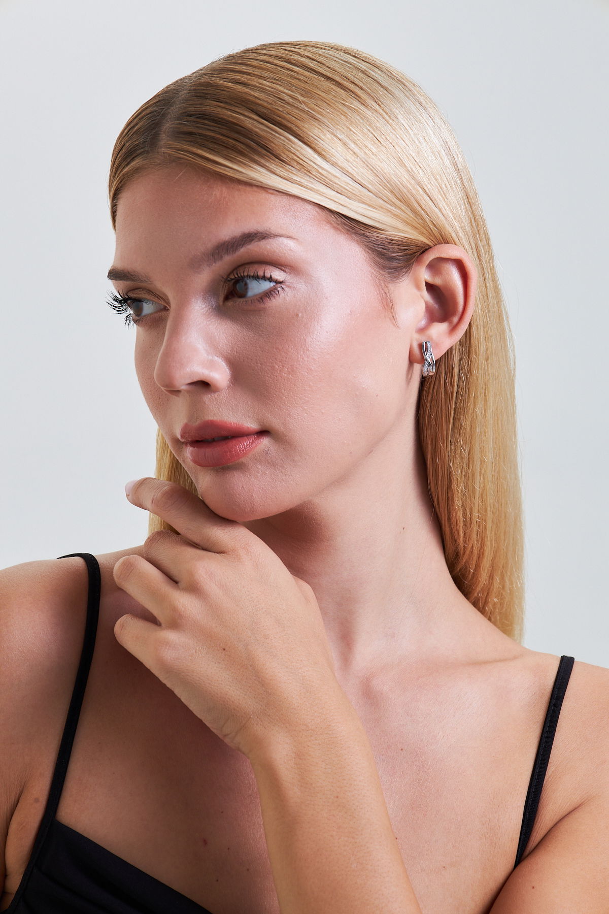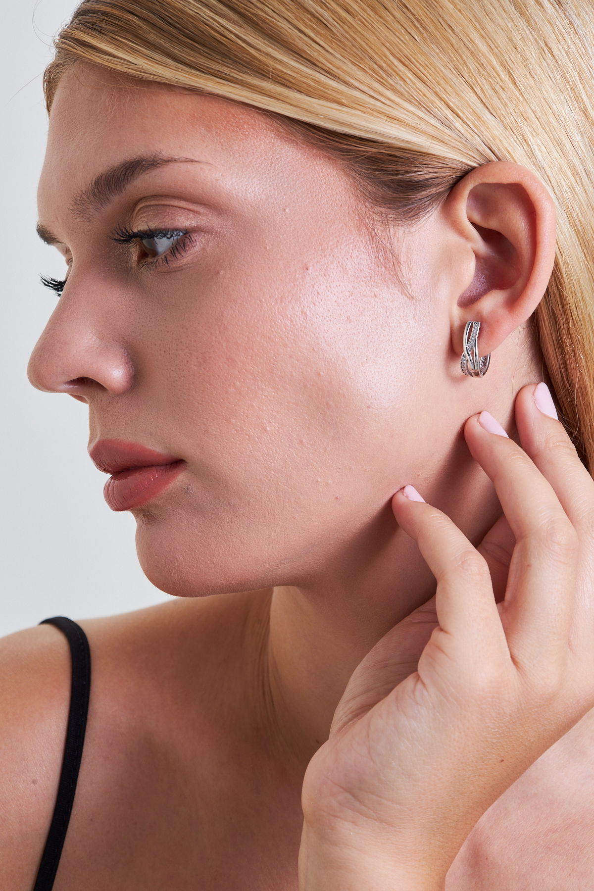925 Ayar Gümüş Çapraz Dalga Formlu Kadın Küpe VKP-7507 - Ventino