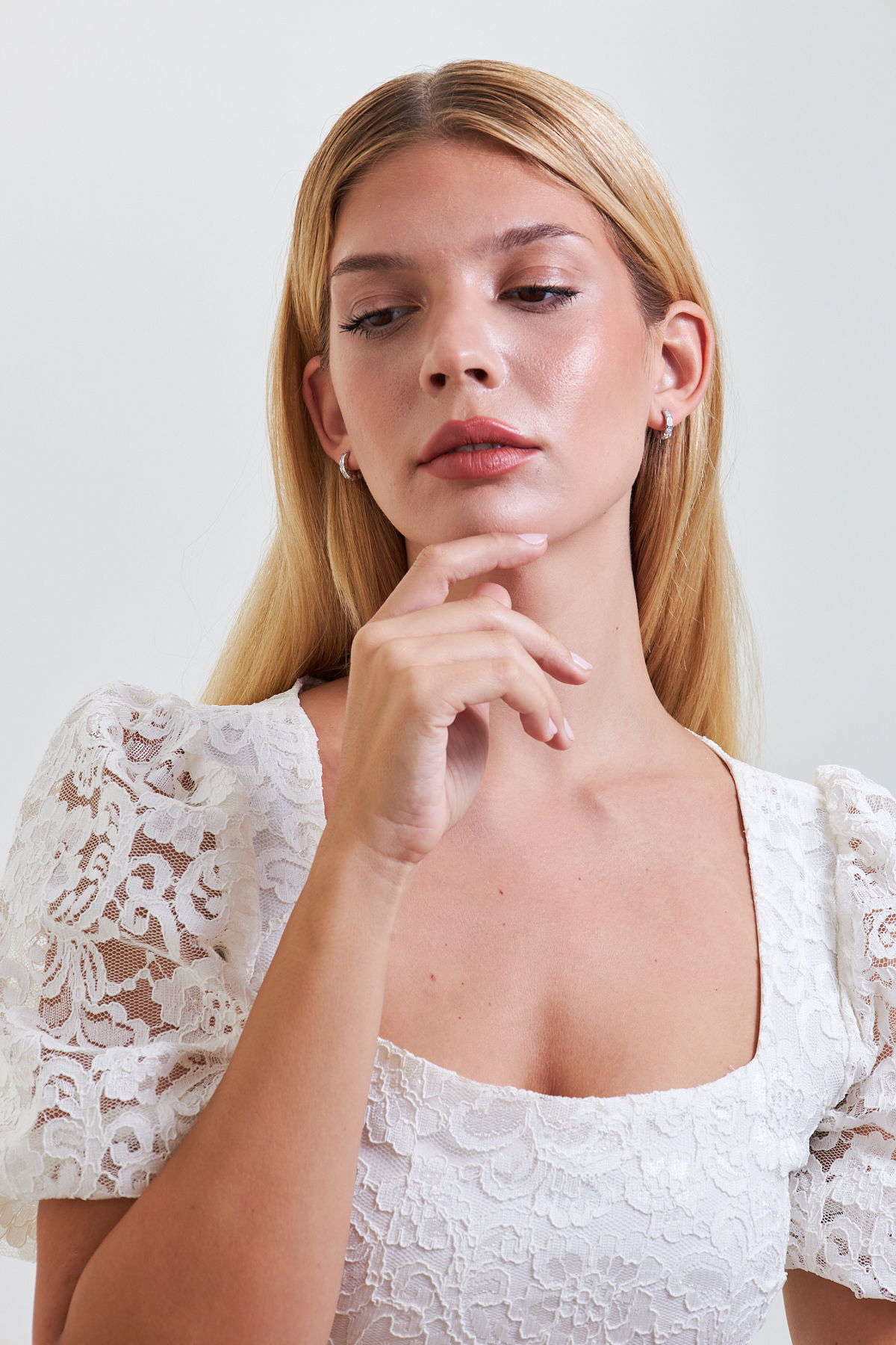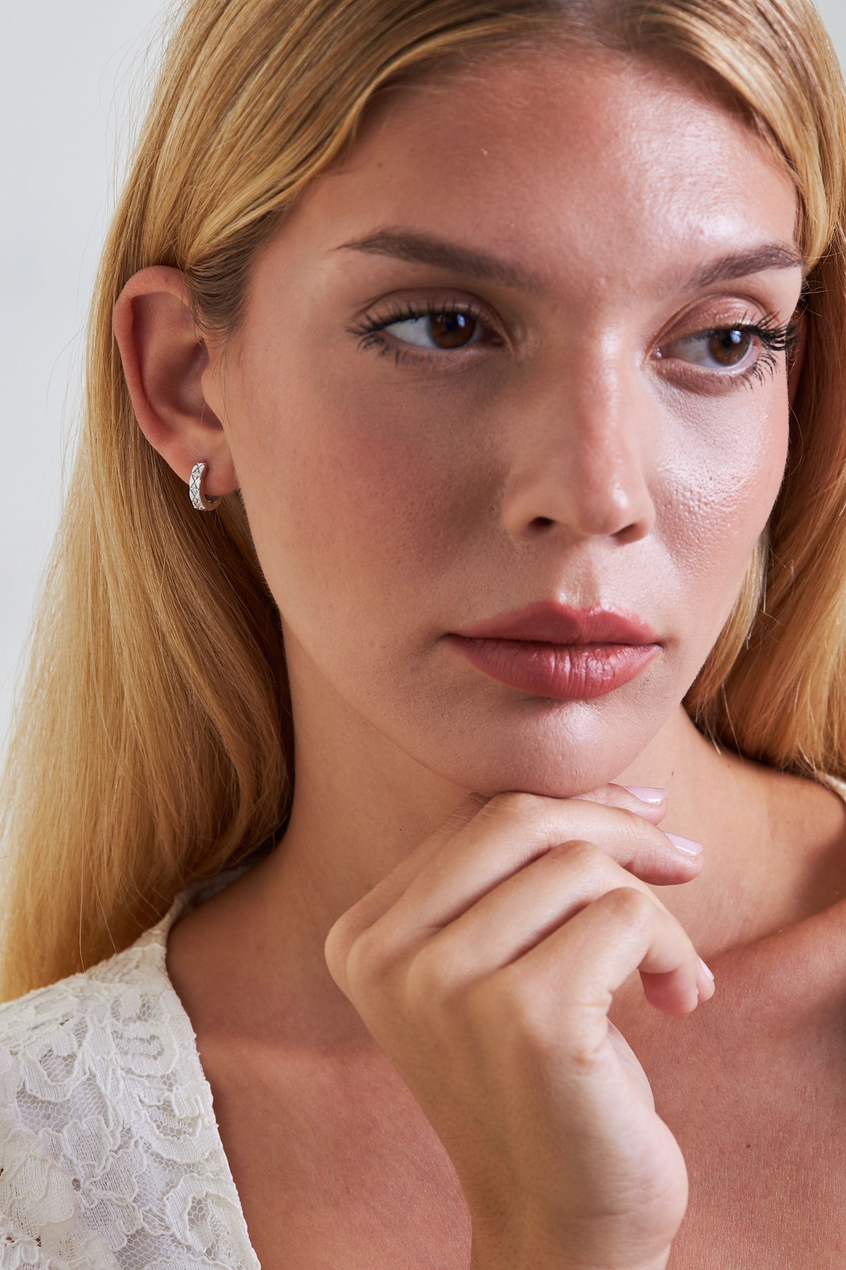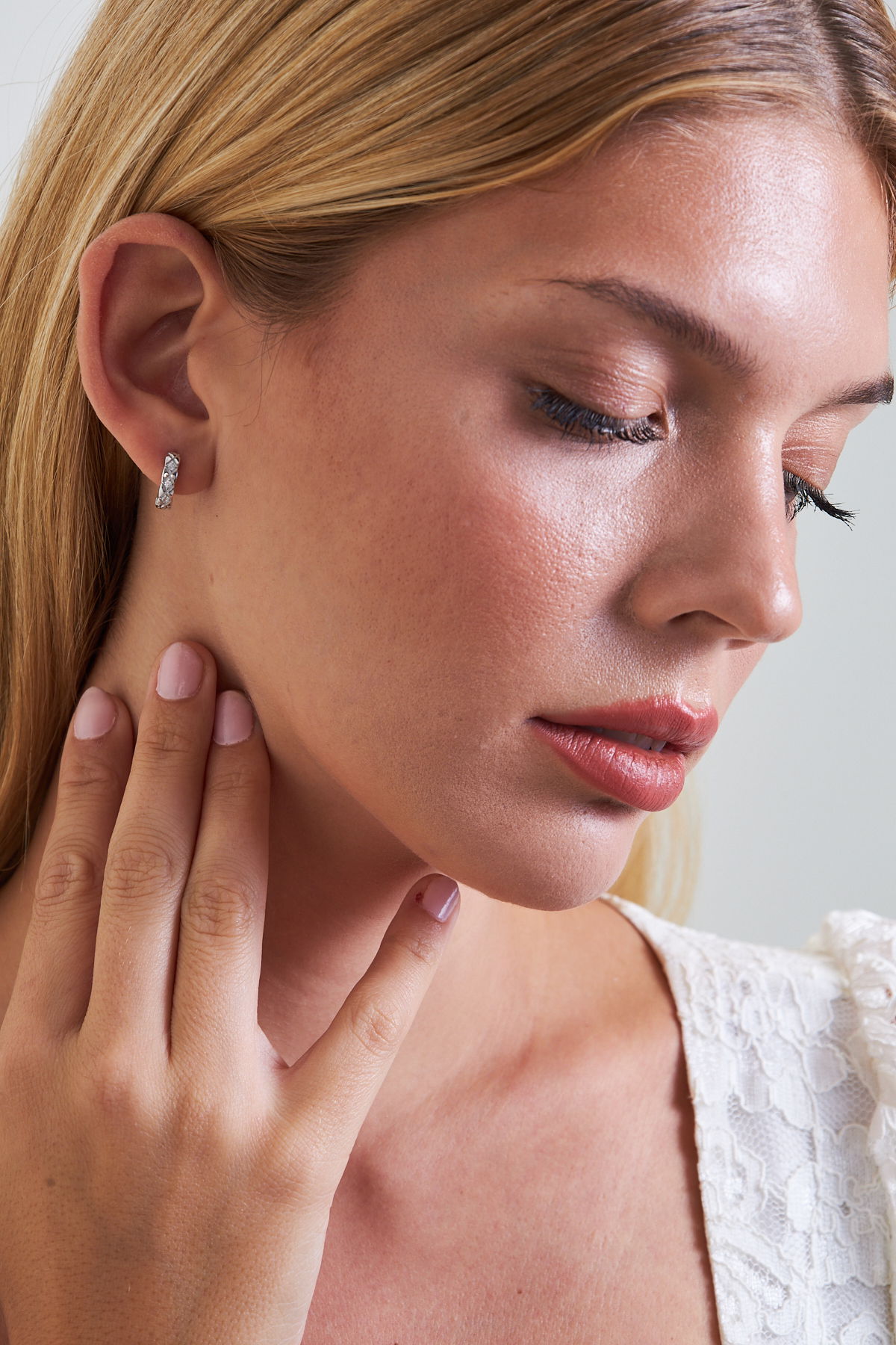 925 Ayar Gümüş Çapraz Kesim Formlu Taşlı Kadın Huggie Küpe VKP-7544 - Ventino