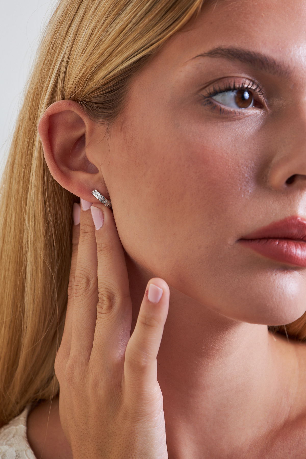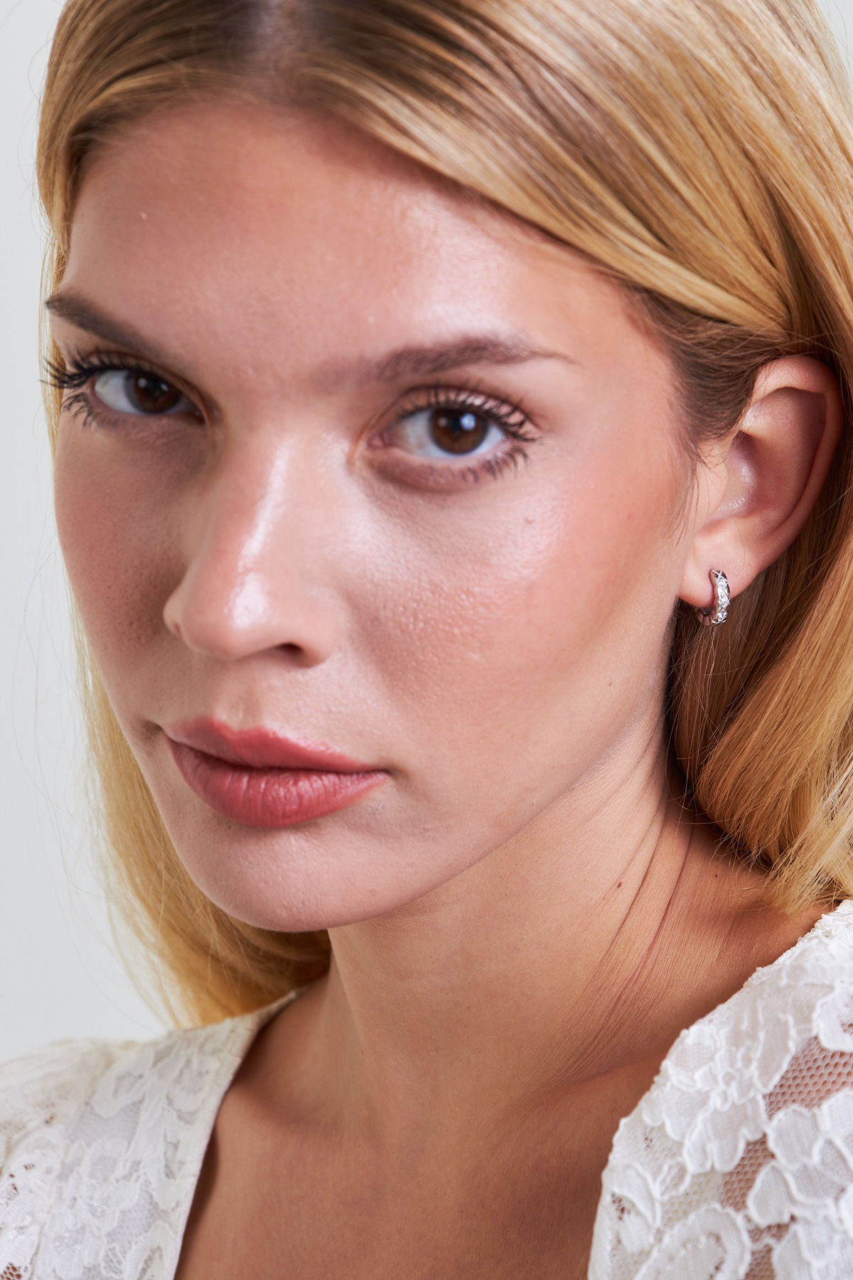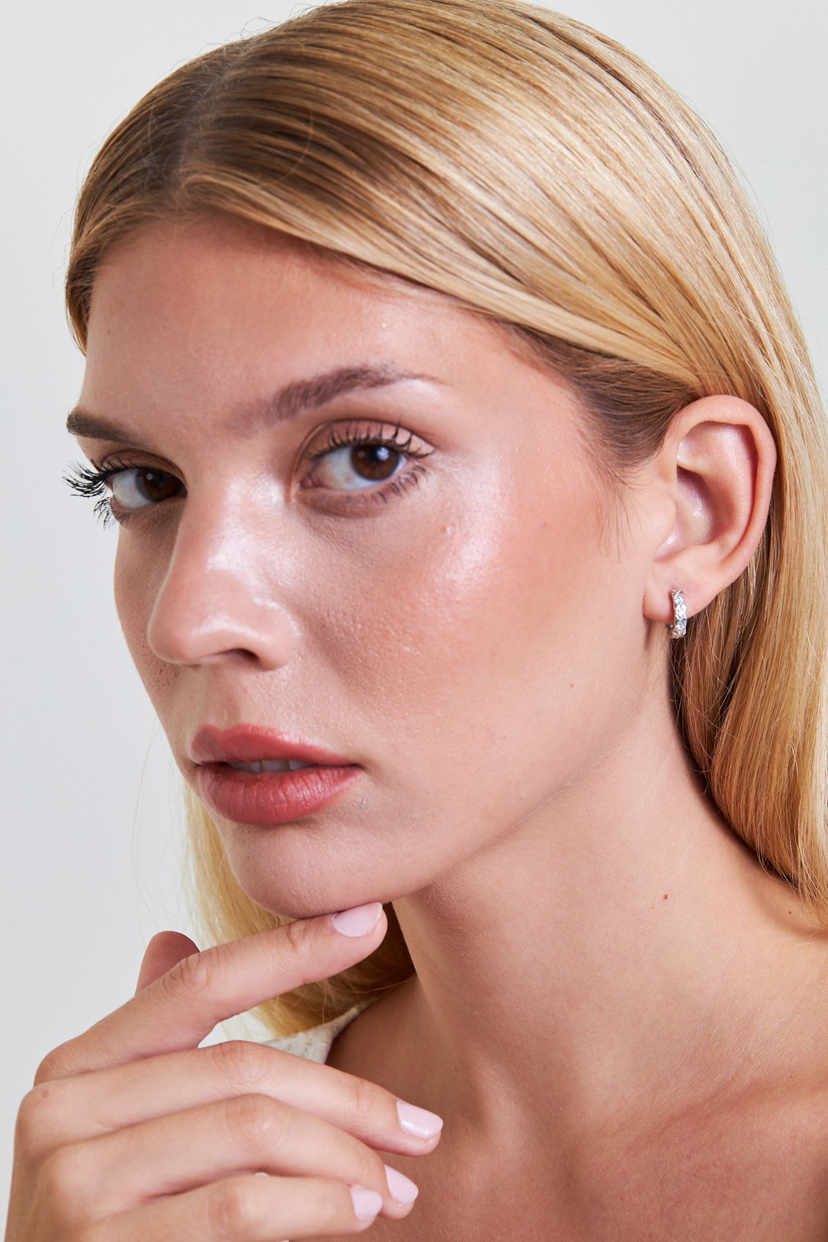 925 Ayar Gümüş Çift Sıra Taşlı Kadın Huggie Küpe VKP-7548 - Ventino