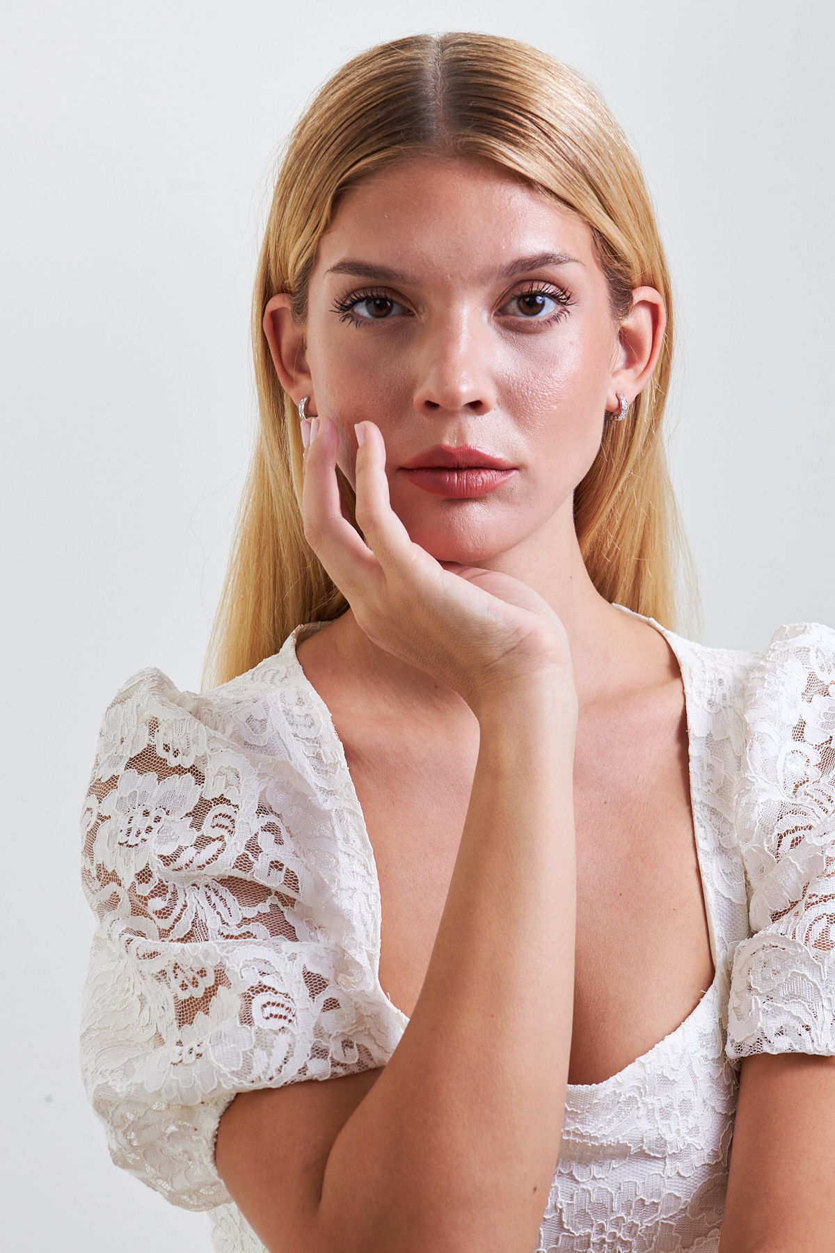 925 Ayar Gümüş Kadın Minimal Tek Sıra Taşlı Küpe VKP-7483 - Ventino