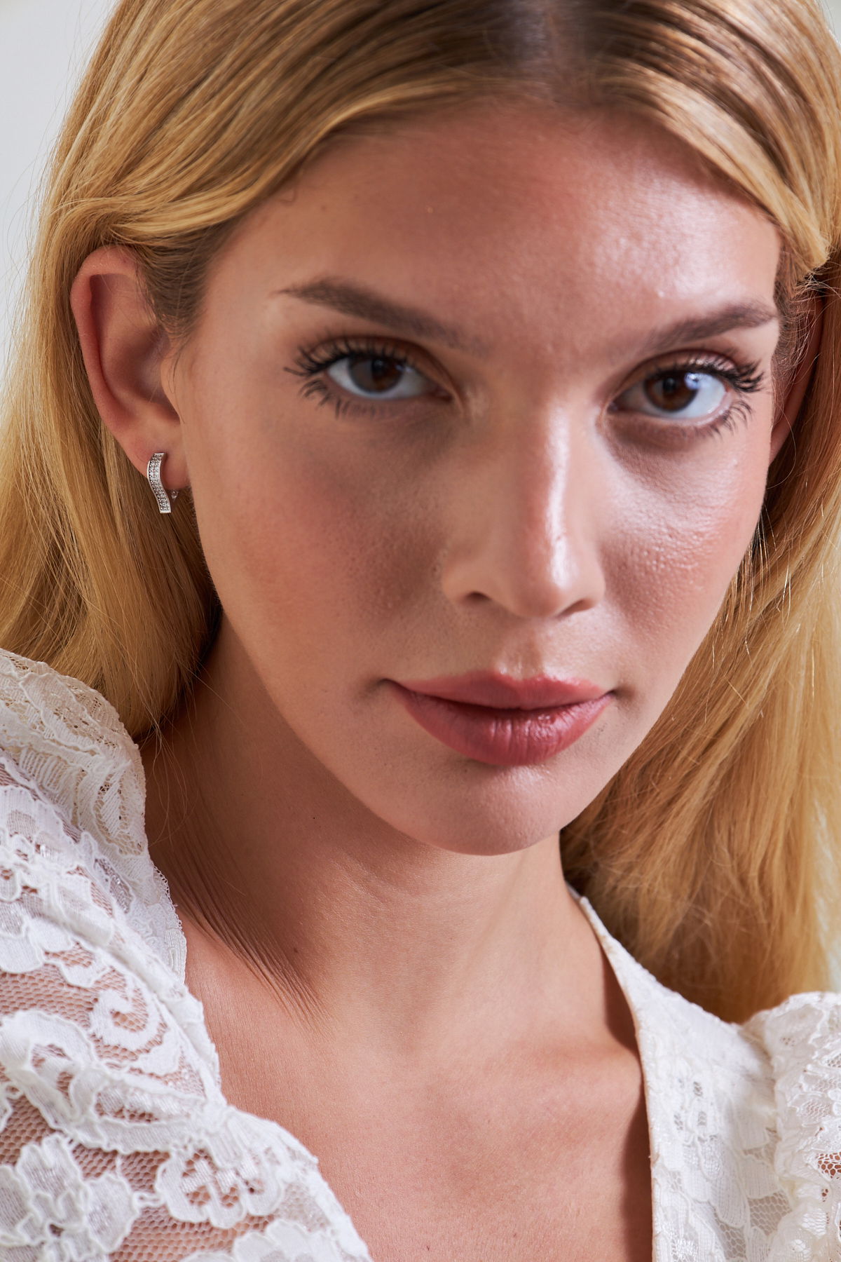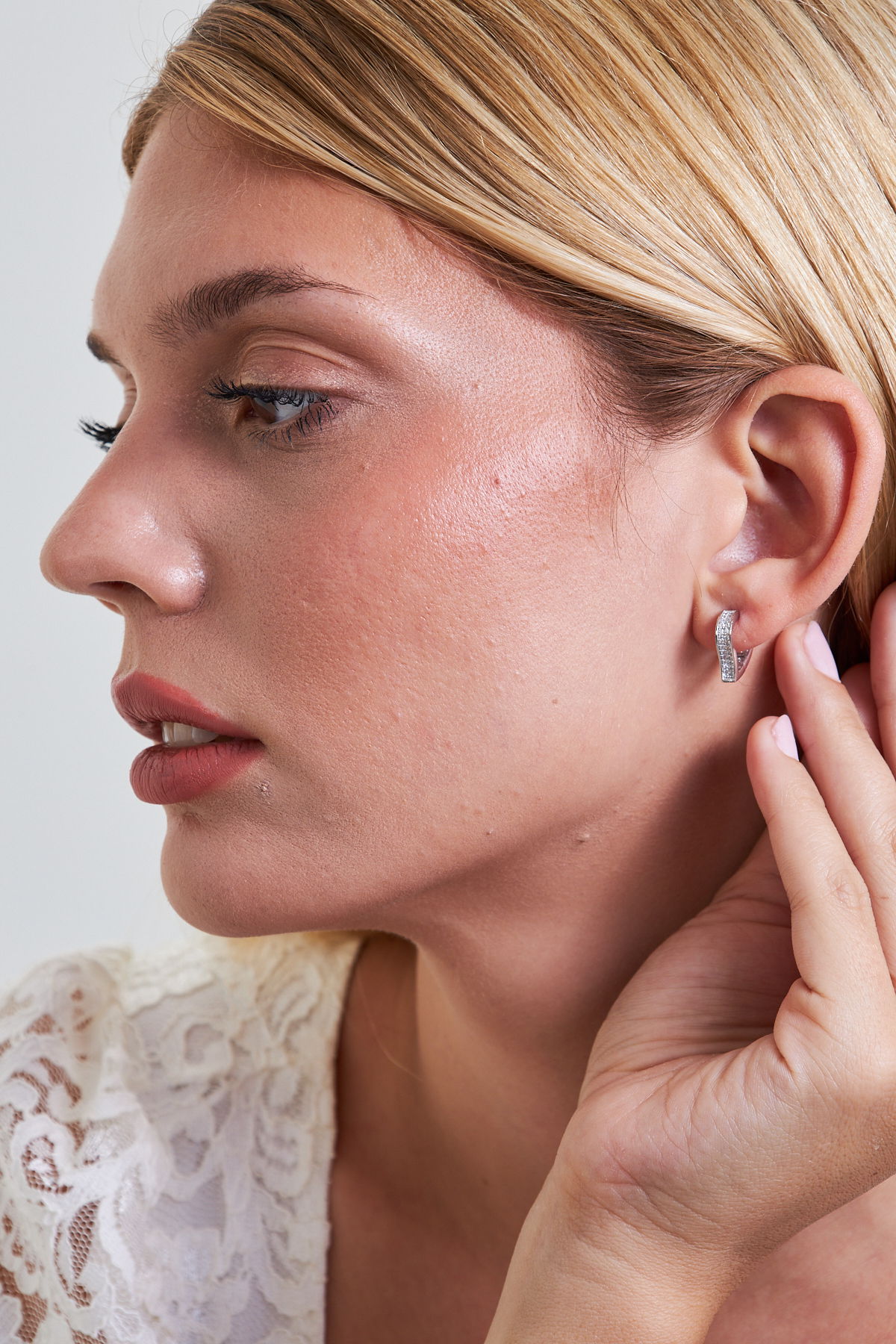 925 Ayar Gümüş Çift Sıra Taşlı Kadın Huggie Küpe VKP-7548 - Ventino