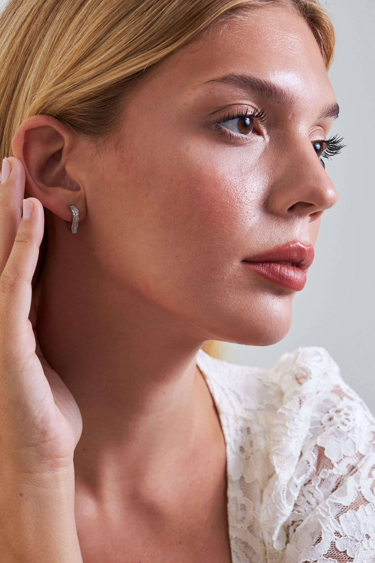 925 Ayar Gümüş Çapraz Kesim Formlu Taşlı Kadın Huggie Küpe VKP-7544 - Ventino