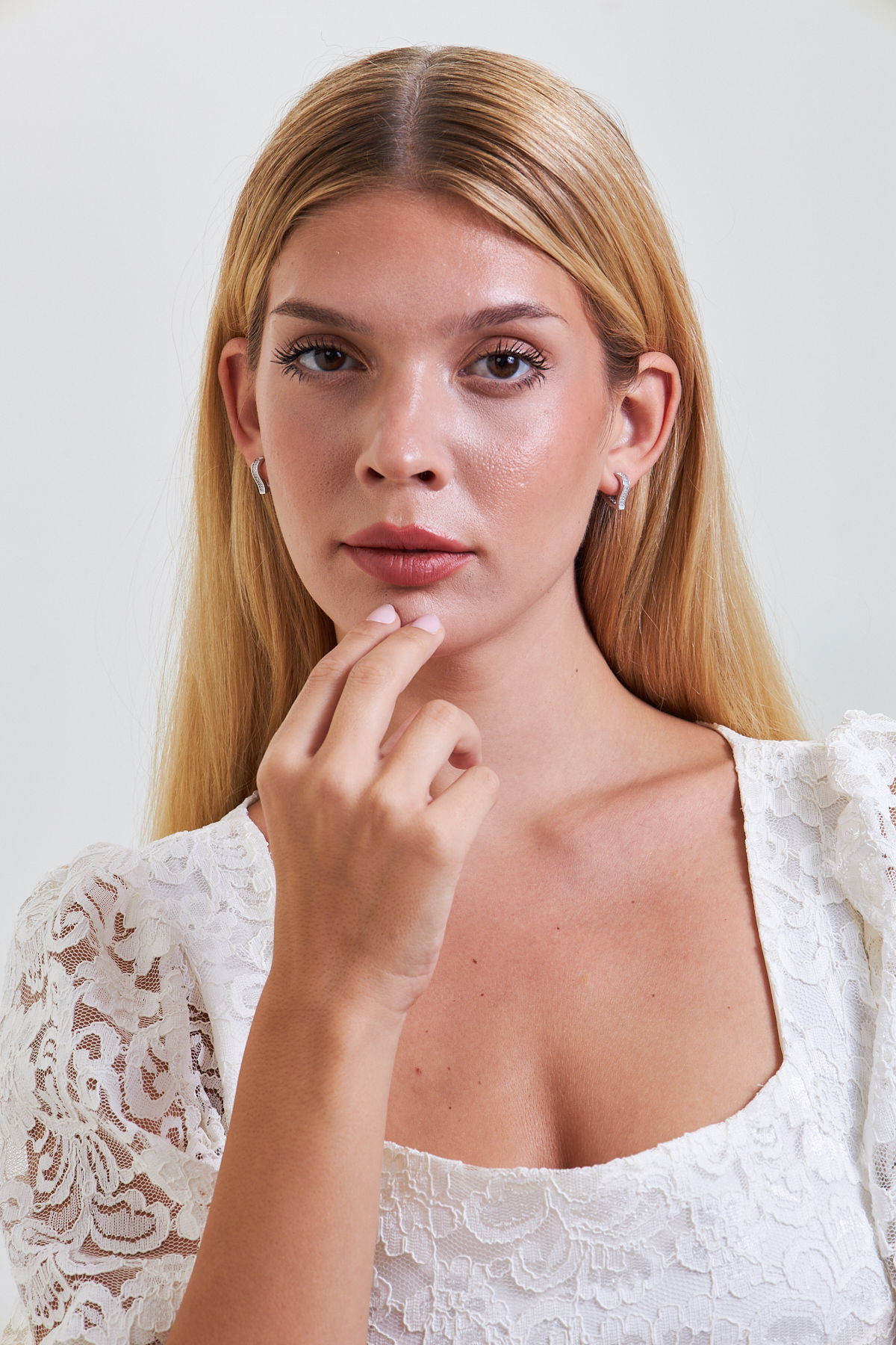 925 Ayar Gümüş Kadın Minimal Tek Sıra Taşlı Küpe VKP-7483 - Ventino
