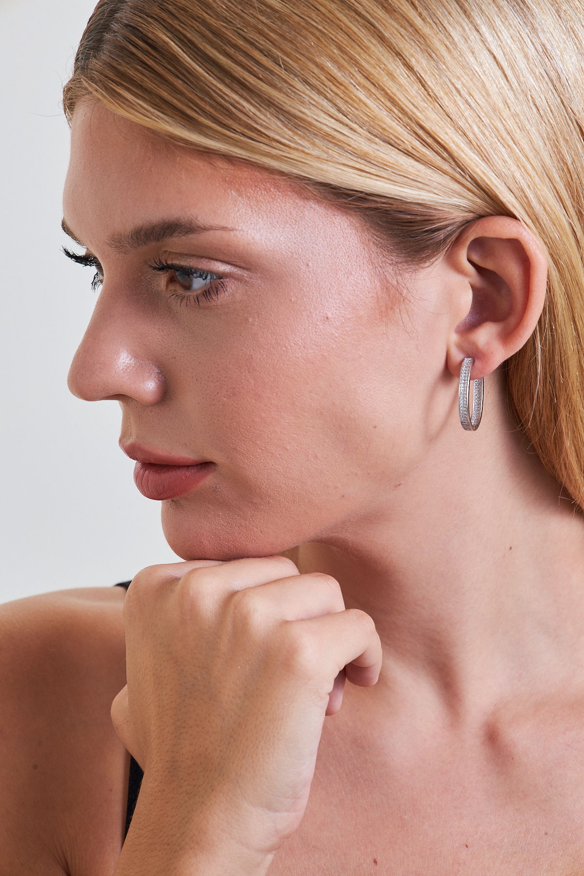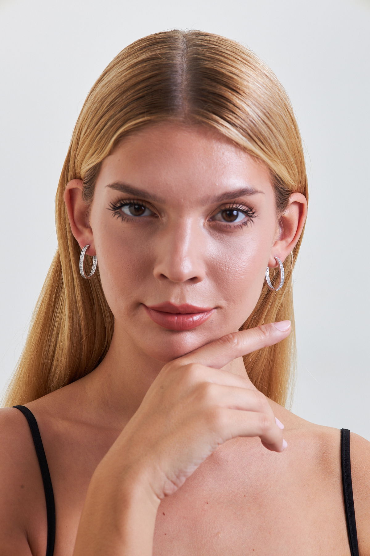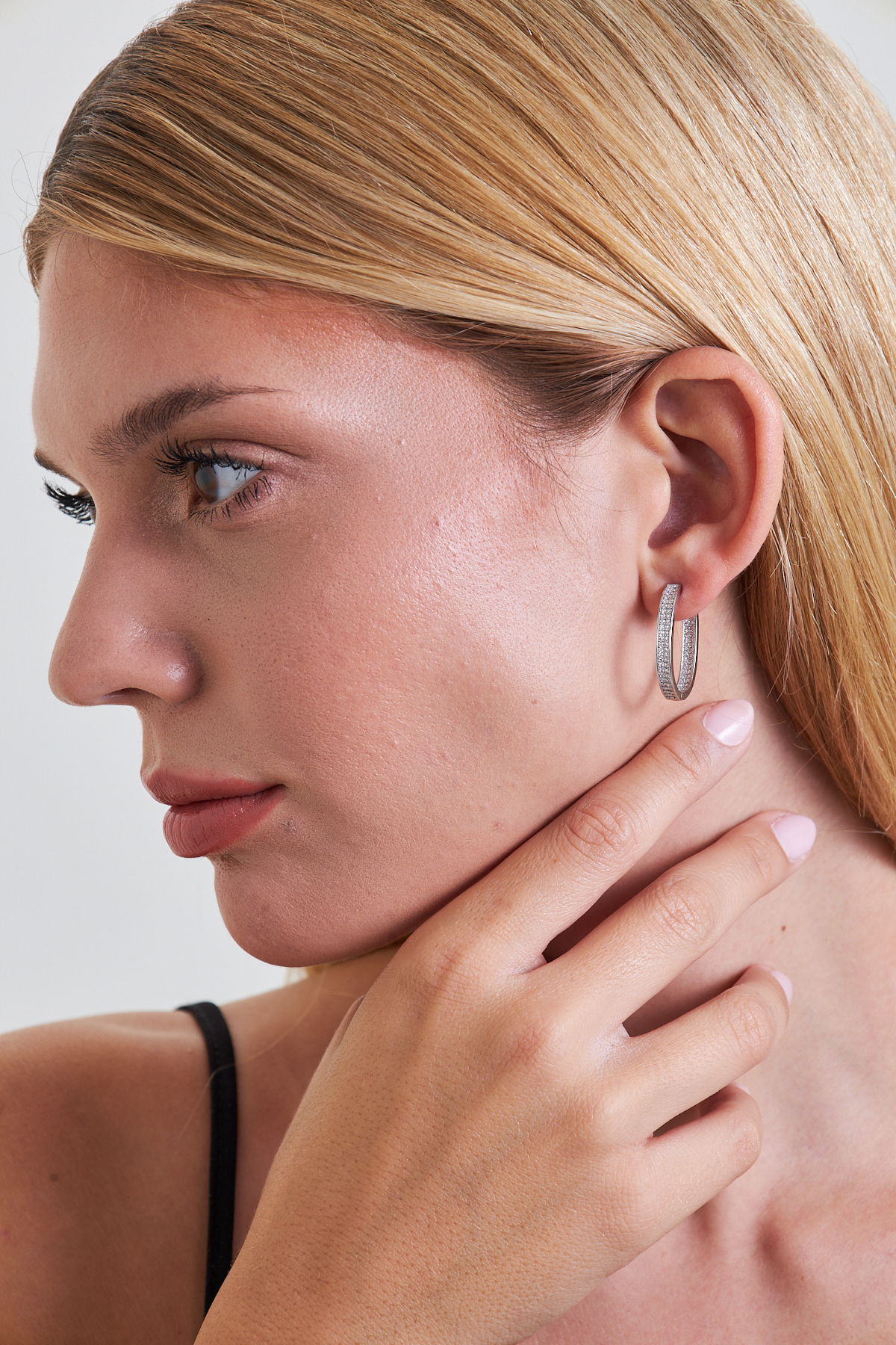 925 Ayar Gümüş Zirkon Taş Sıralı Kadın Halka Küpe VKP-7519 - Ventino