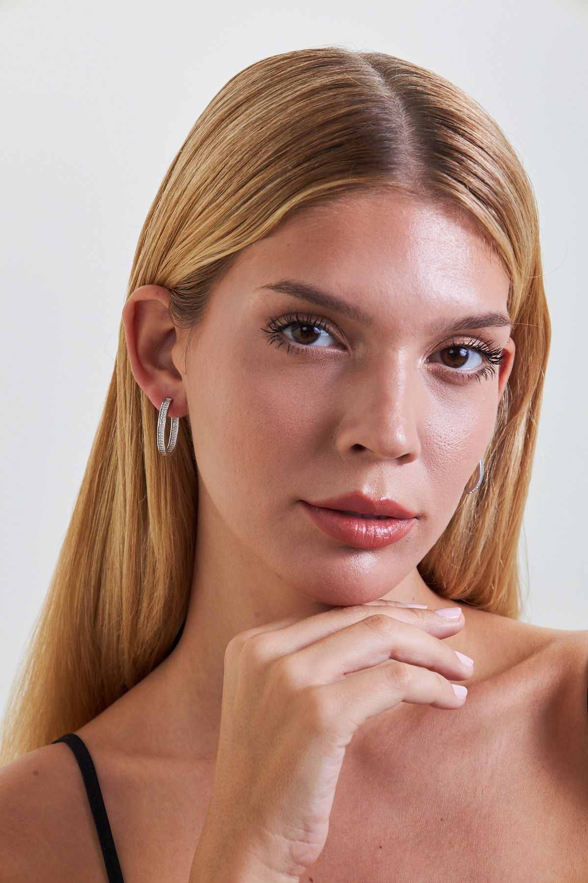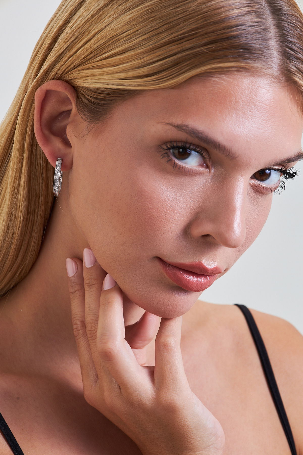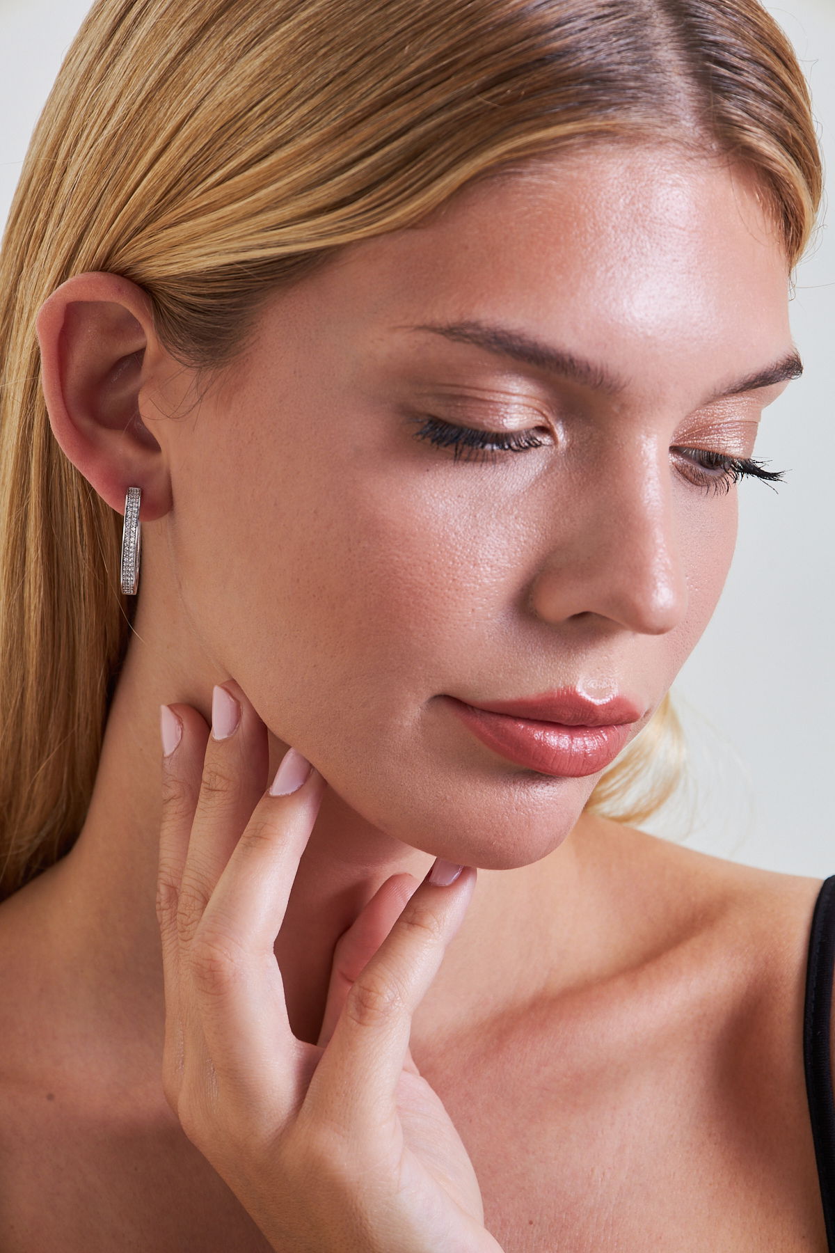 925 Ayar Gümüş Zirkon Taş Sıralı Kadın Halka Küpe VKP-7519 - Ventino