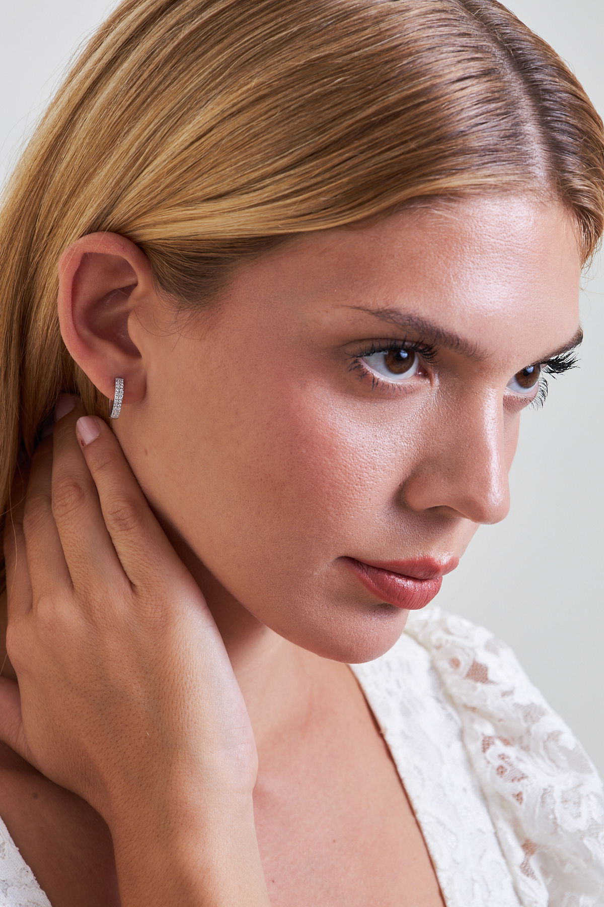 Işıltısını zarafetten alan bu küpe sade ama dikkat çekici tasarımıyla her stile uyum sağlar. Günlük kullanımda da özel davetlerde de zarif bir dokunuş sunan bu model, parlak taş detaylarıyla kulakta şık bir duruş yaratır.