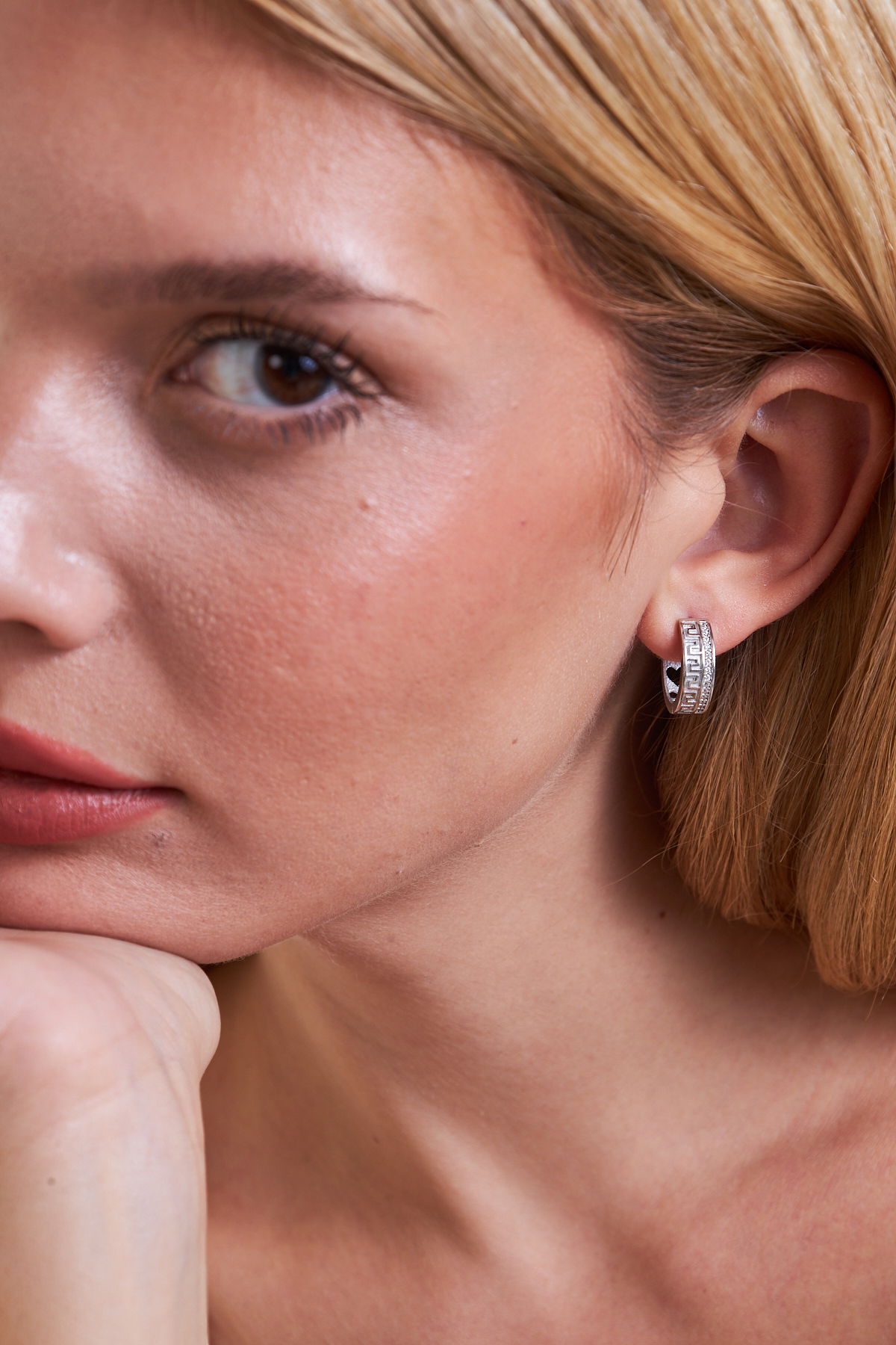 925 Ayar Gümüş Kadın Kesik Hat Halka Küpe VKP-7488 - Ventino