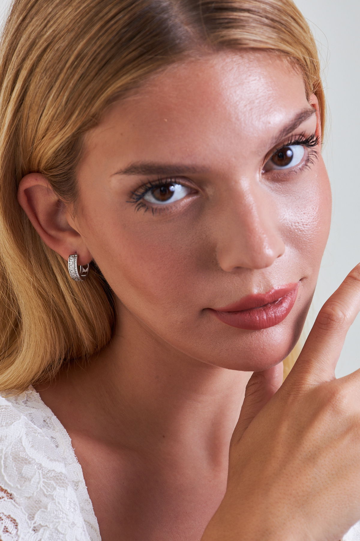 925 Ayar Gümüş Grek Desenli Taşlı Kadın Halka Küpe VKP-7539 - Ventino