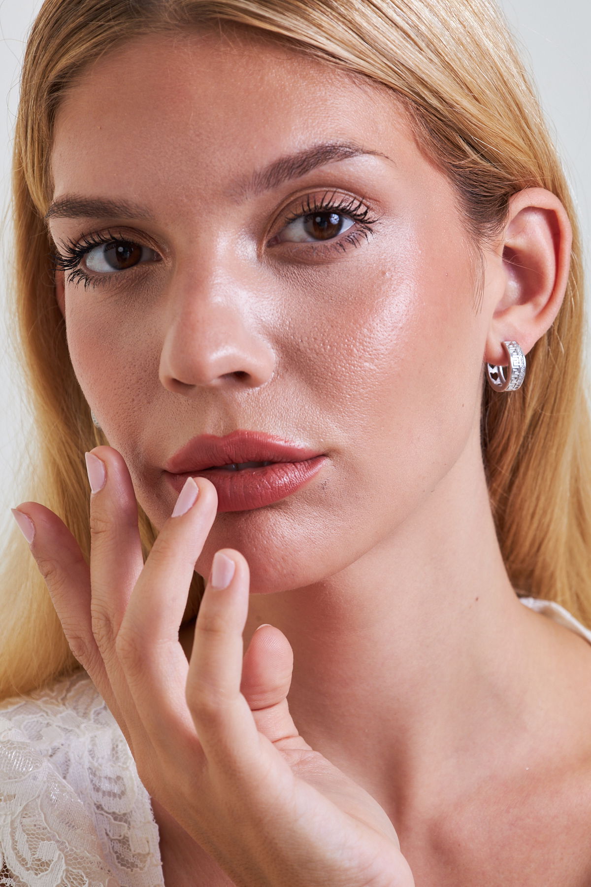 925 Ayar Gümüş Kadın Düz Kalın Halka Küpe VKP-7476 - Ventino