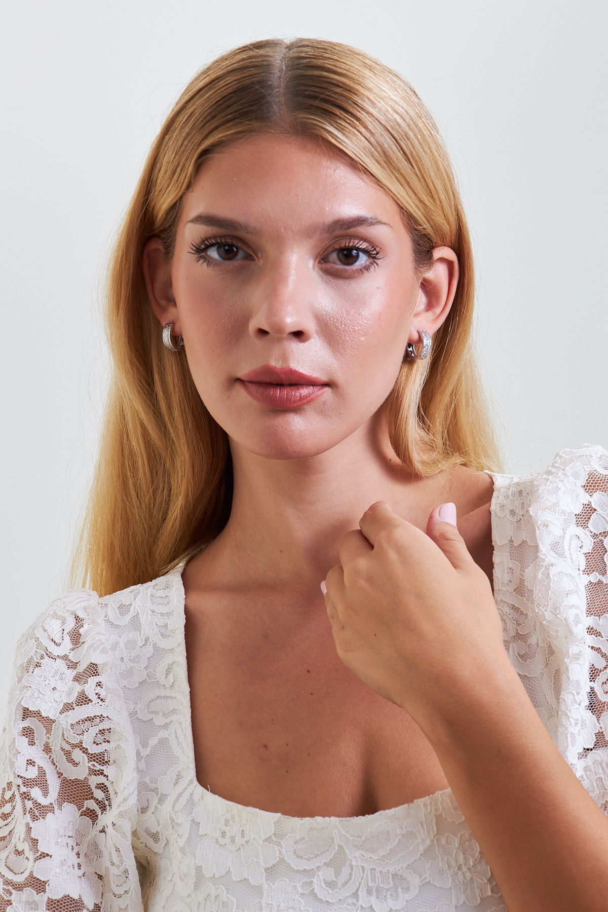 925 Ayar Gümüş Kadın Oyma Desenli Halka Küpe VKP-7489 - Ventino