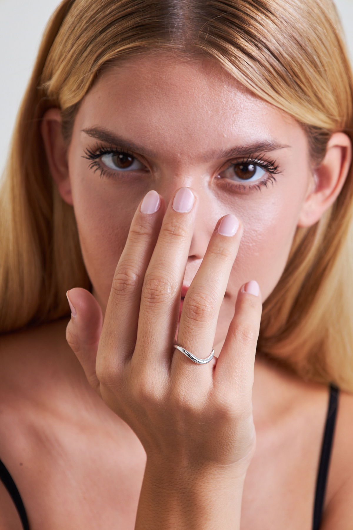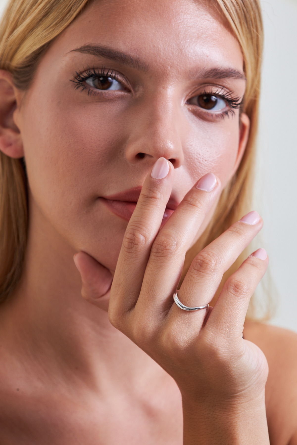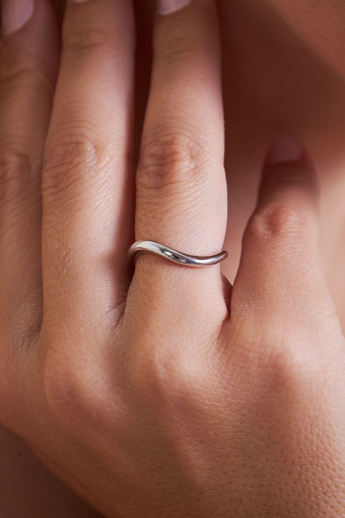 925 Ayar Gümüş Kadın İnce Dalga Formlu Yüzük VKY-2098 - Ventino