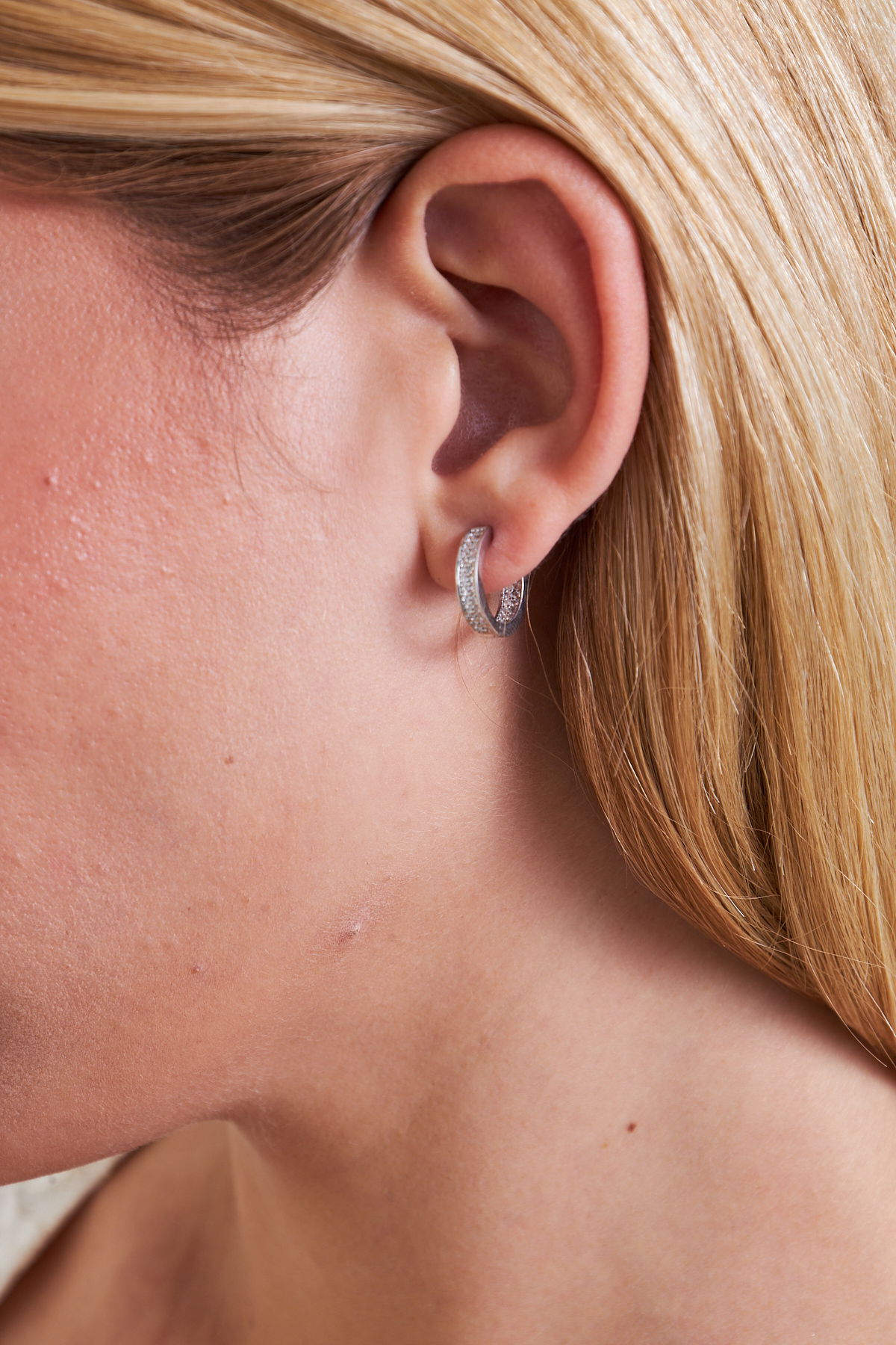 925 Ayar Gümüş Tek Sıra Taşlı Kadın Huggie Küpe VKP-7550 - Ventino