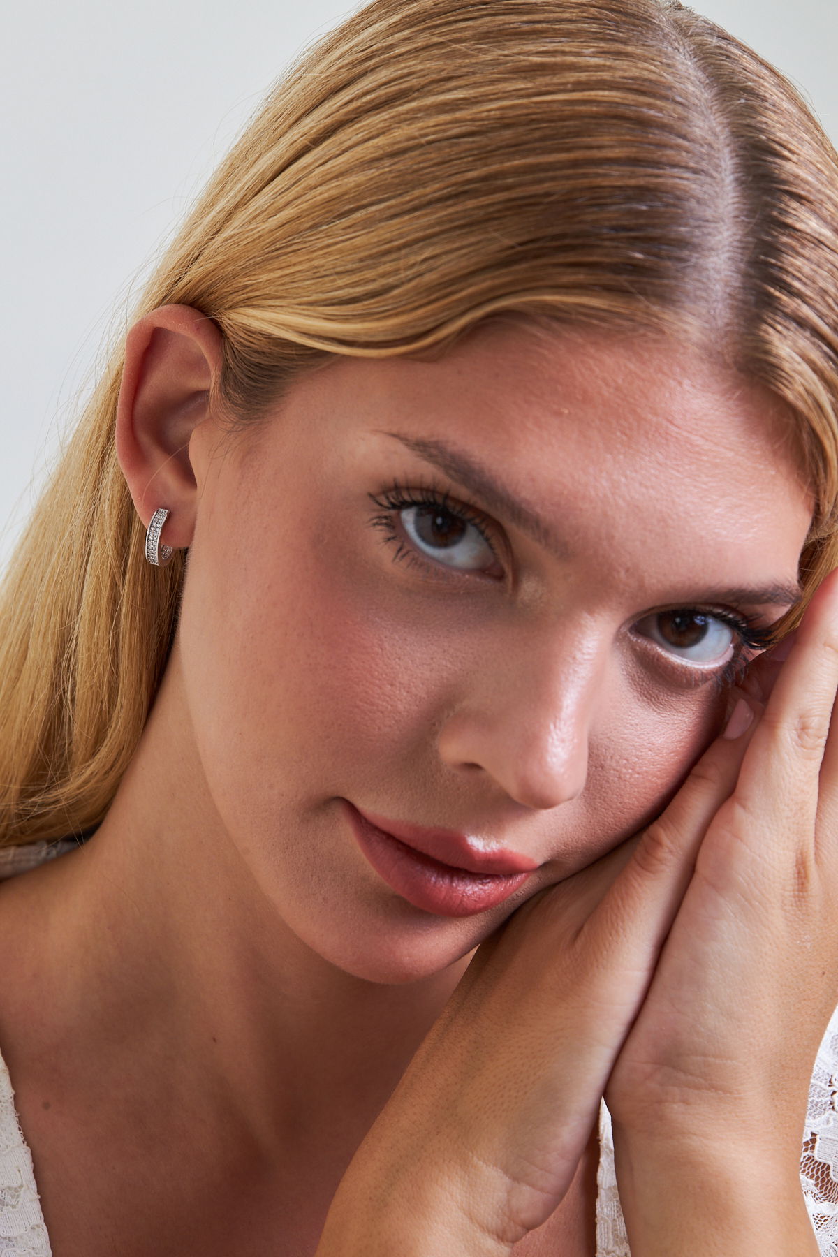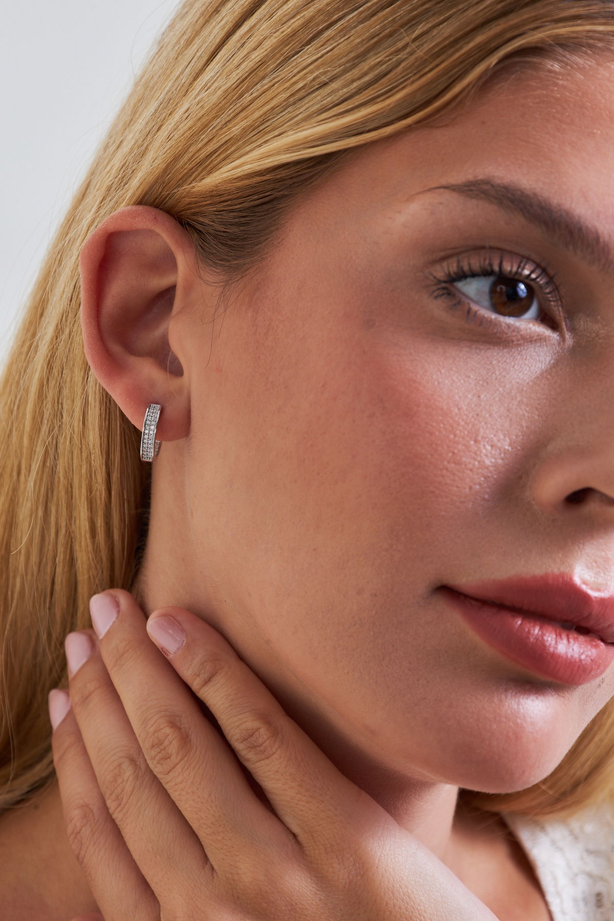 925 Ayar Gümüş Çift Sıra Taşlı Kadın Huggie Küpe VKP-7548 - Ventino