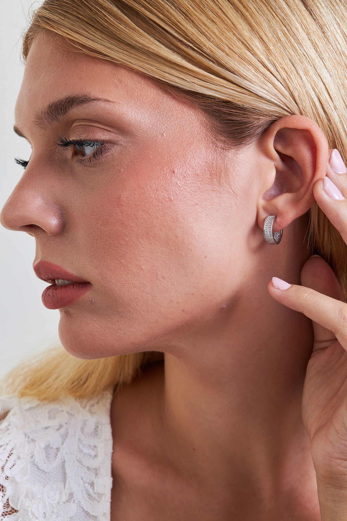 925 Ayar Gümüş Çift Sıra Taşlı Kadın Huggie Küpe VKP-7548 - Ventino