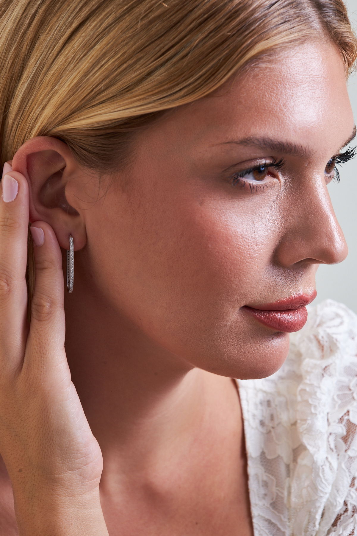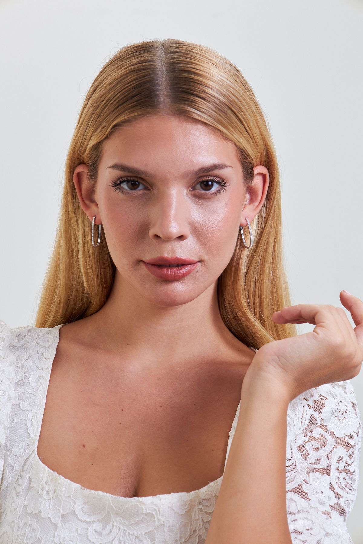925 Ayar Gümüş Tek Sıra Taşlı Kadın Uzun Oval Küpe VKP-7538 - Ventino