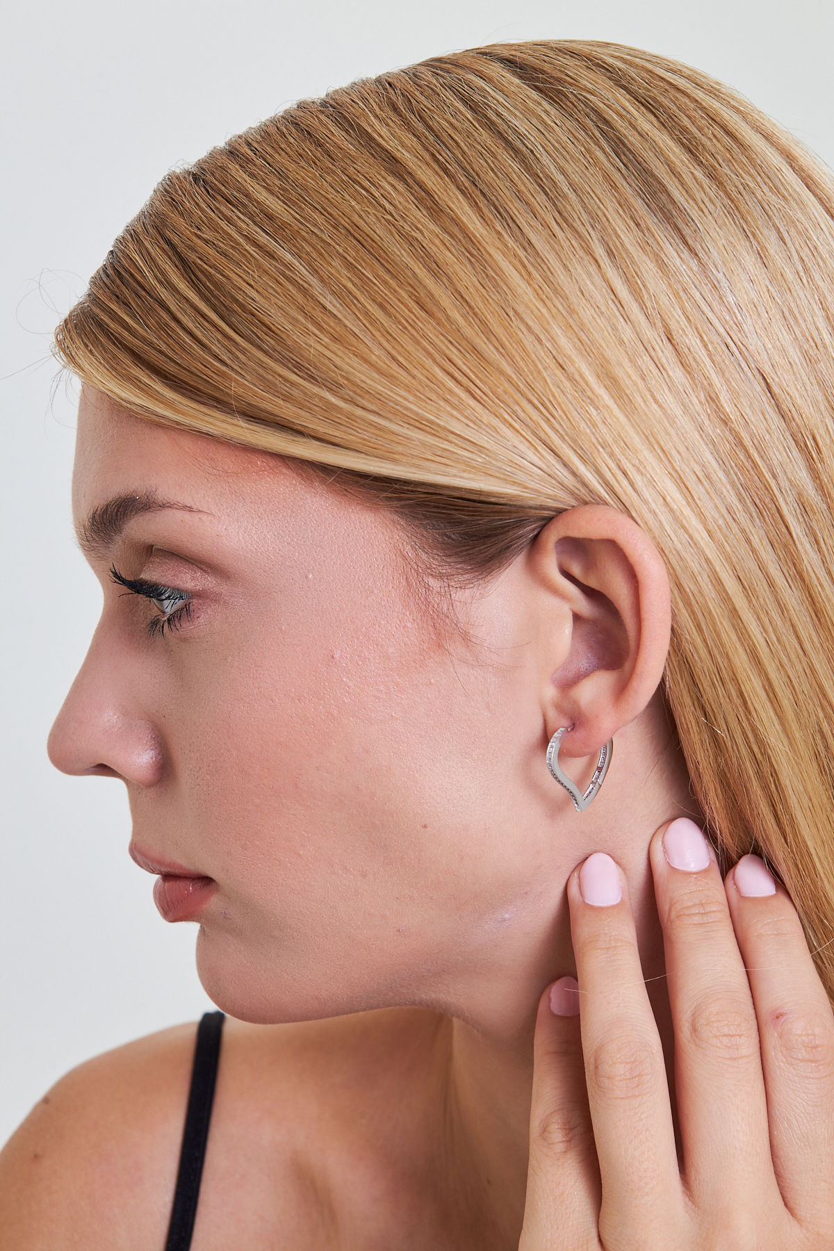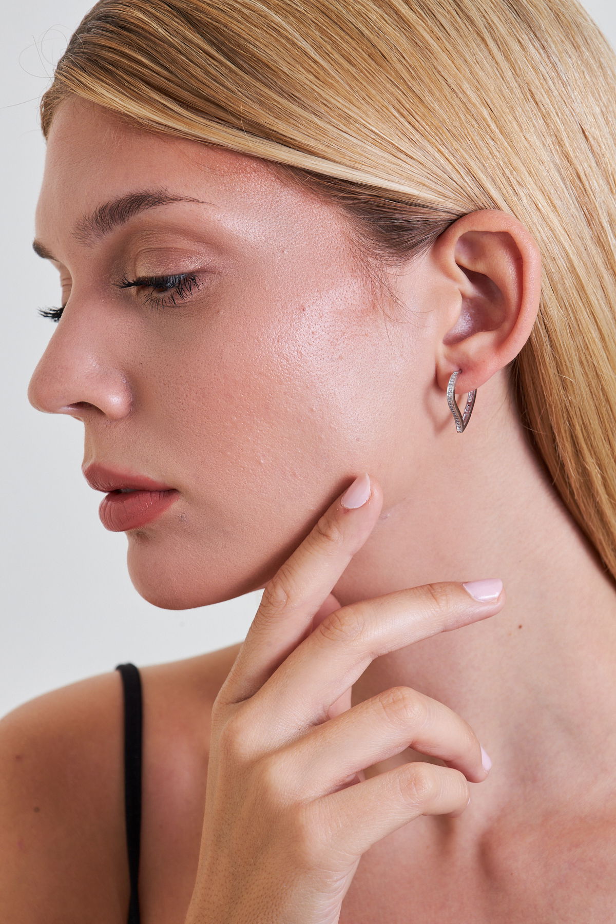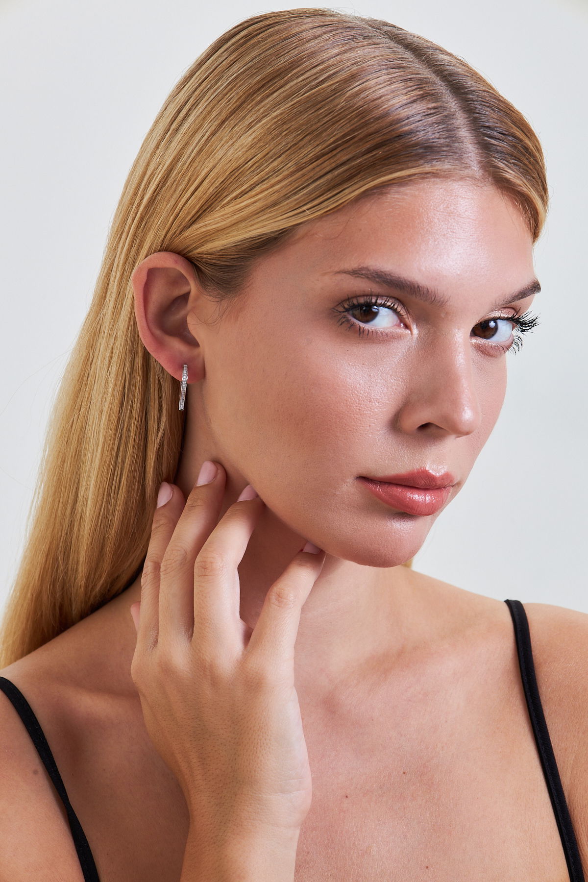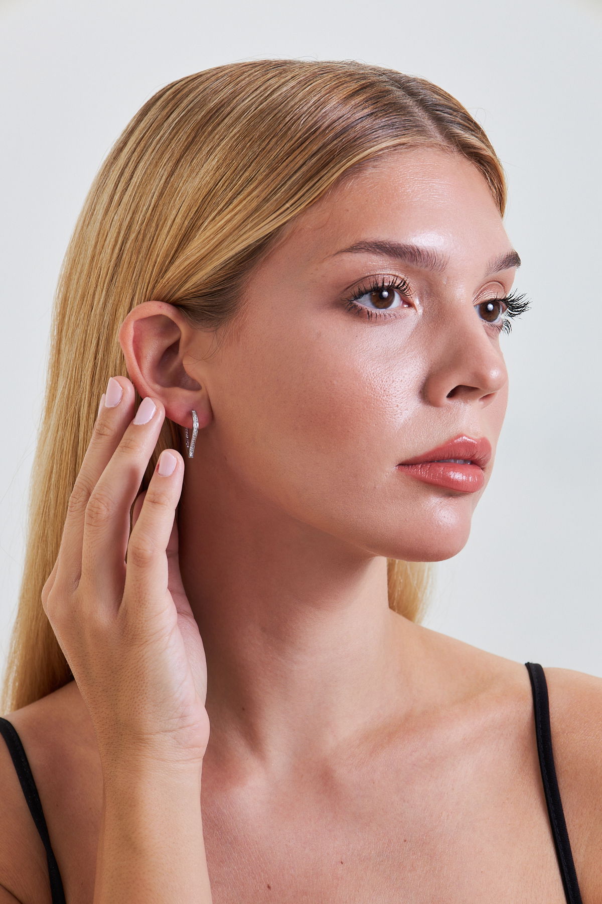 925 Ayar Gümüş Zirkon Taş Sıralı Kadın Halka Küpe VKP-7519 - Ventino
