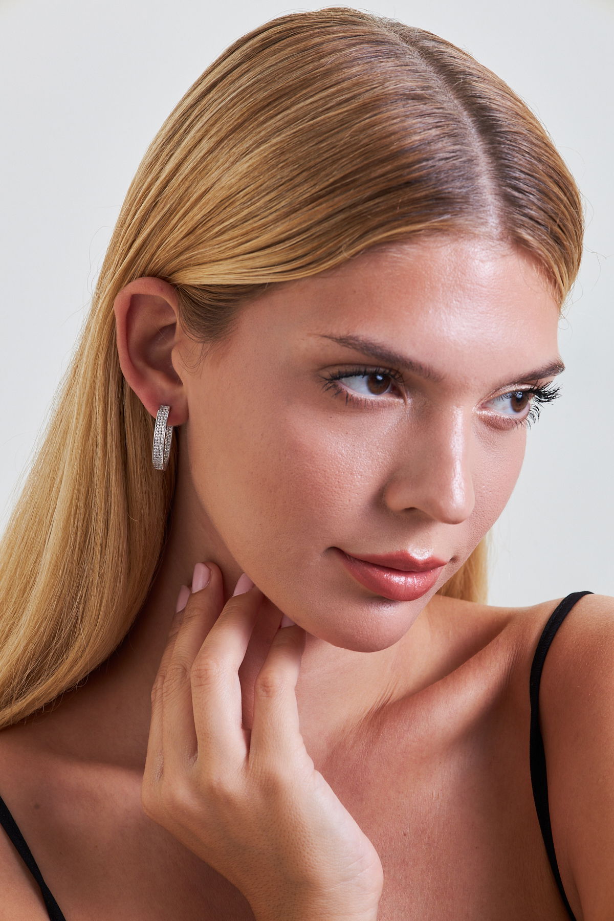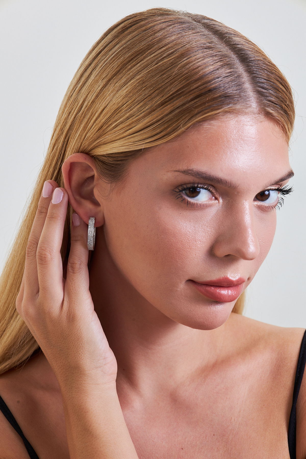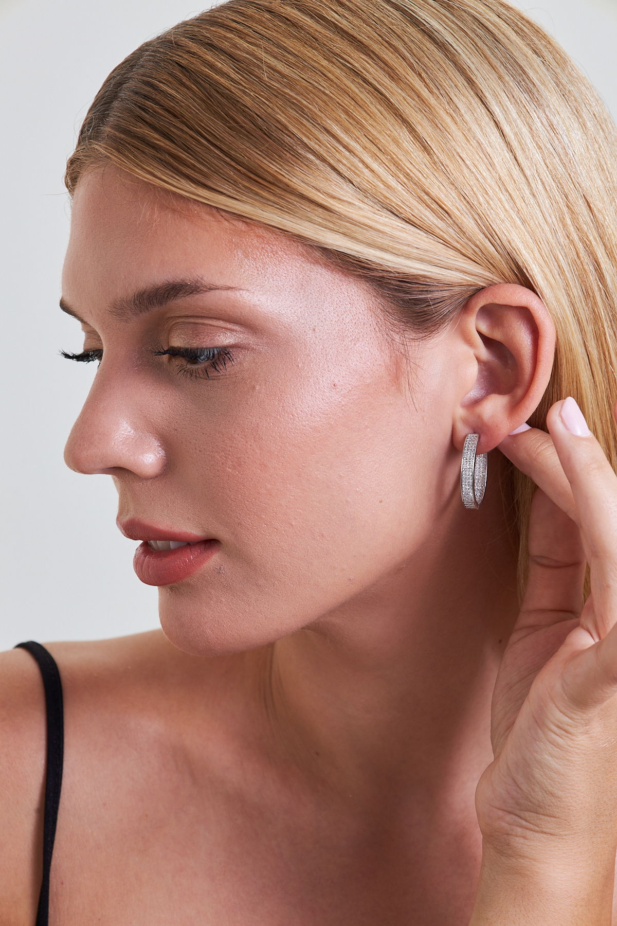 925 Ayar Gümüş Zirkon Taş Sıralı Kadın Halka Küpe VKP-7519 - Ventino