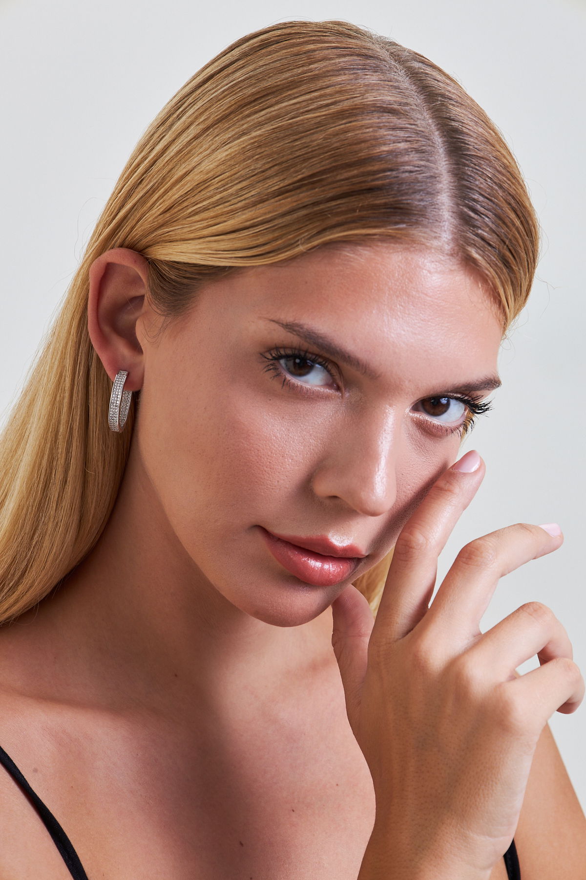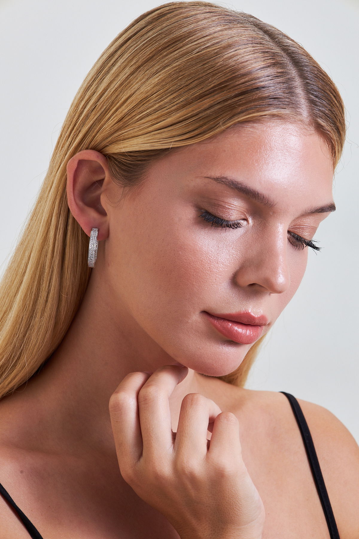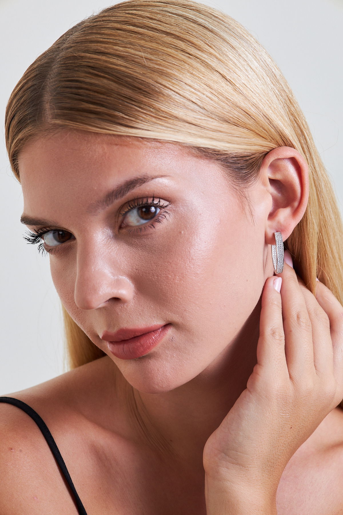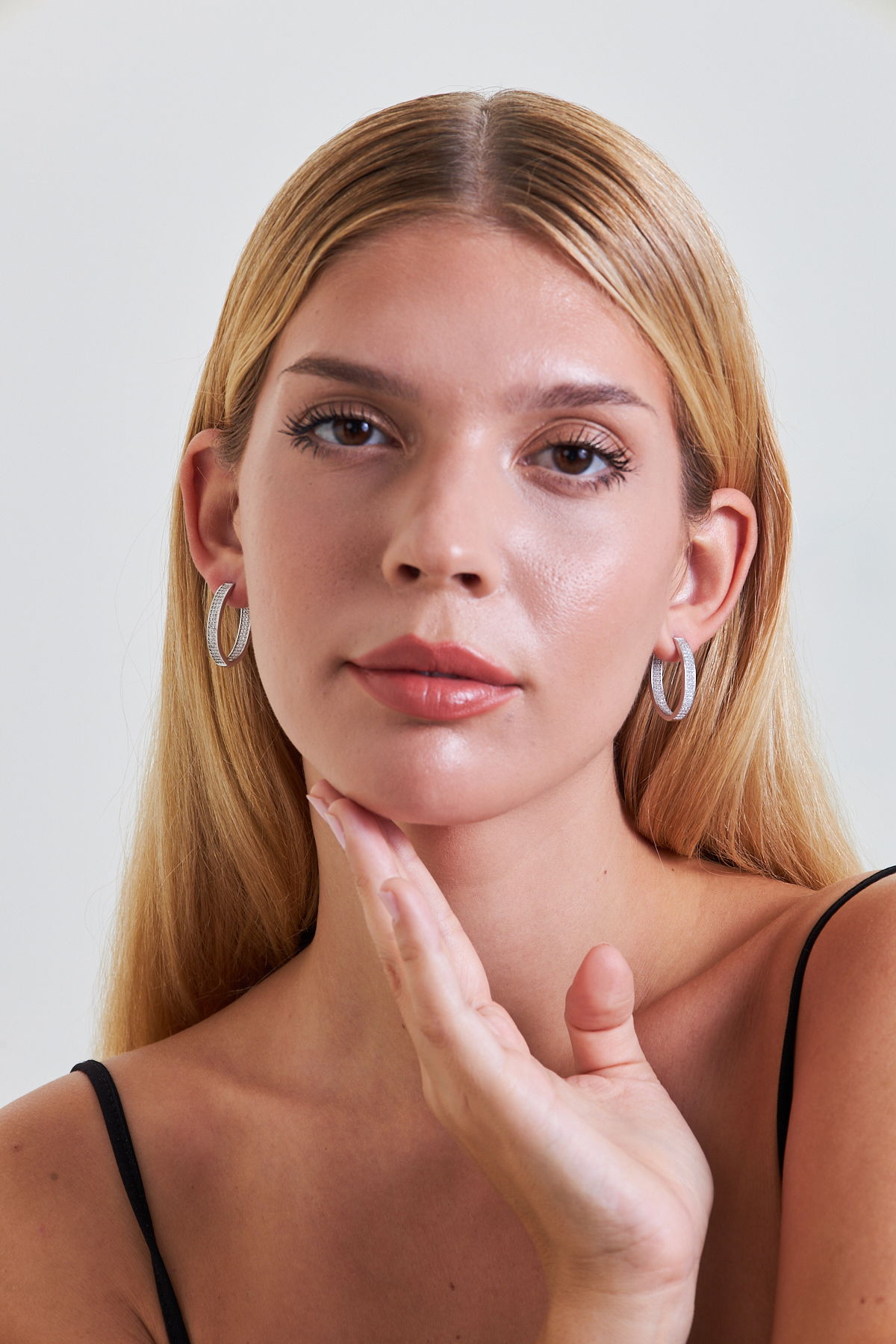 925 Ayar Gümüş Zirkon Taş Sıralı Kadın Halka Küpe VKP-7519 - Ventino