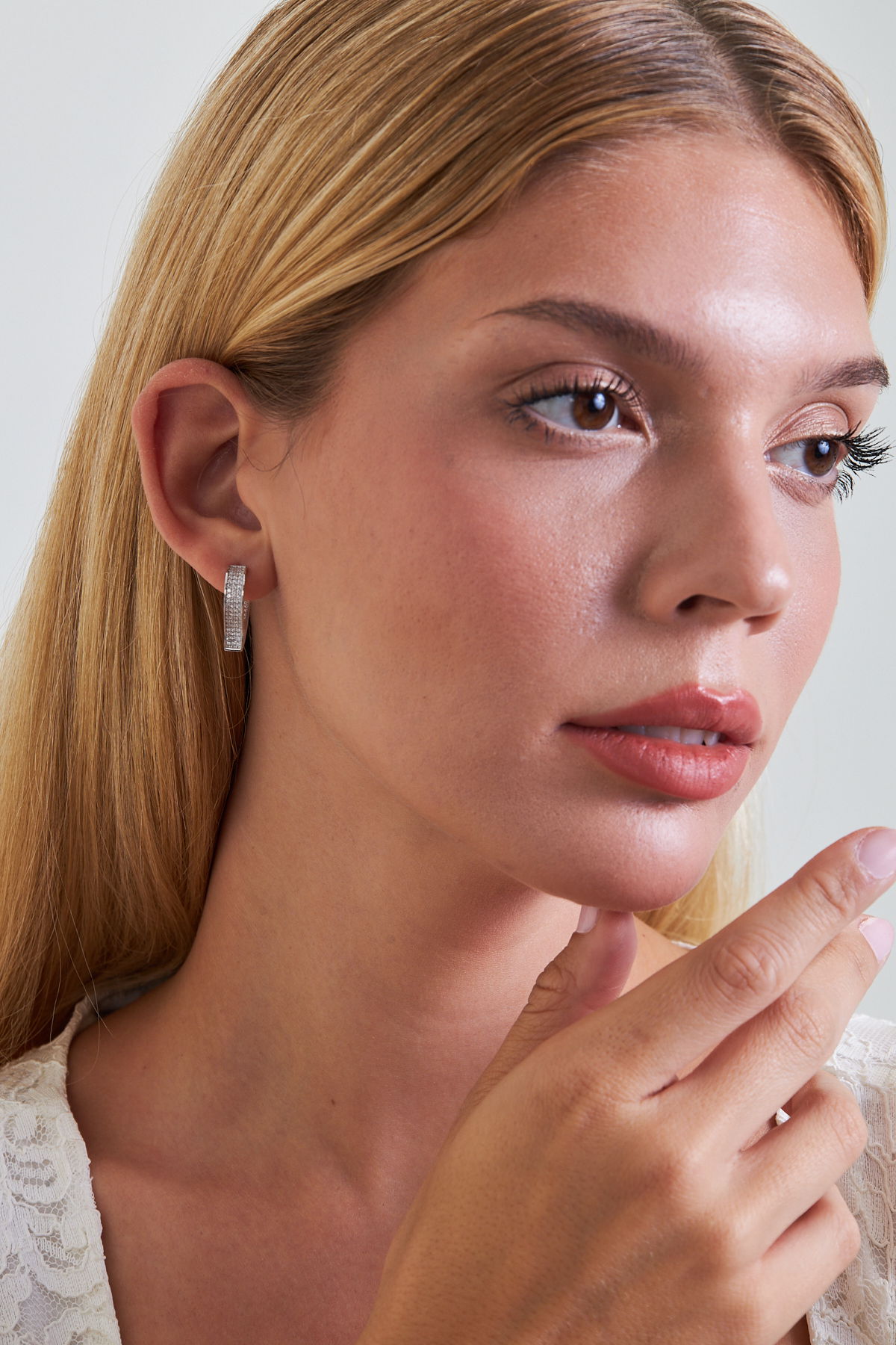 925 Ayar Gümüş Zirkon Taş Sıralı Kadın Halka Küpe VKP-7519 - Ventino