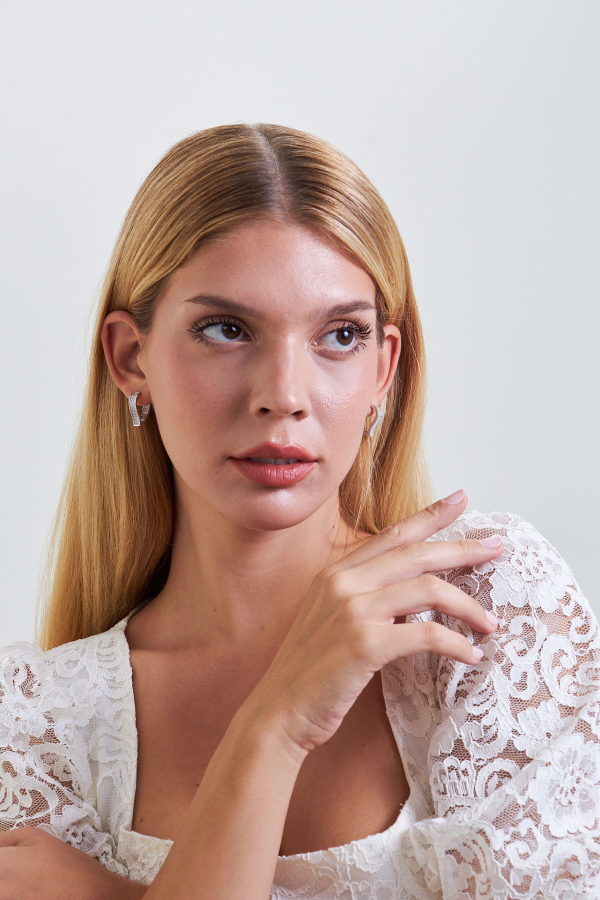 925 Ayar Gümüş Tek Sıra Taşlı Kavis Model Kadın Küpe VKP-7509 - Ventino