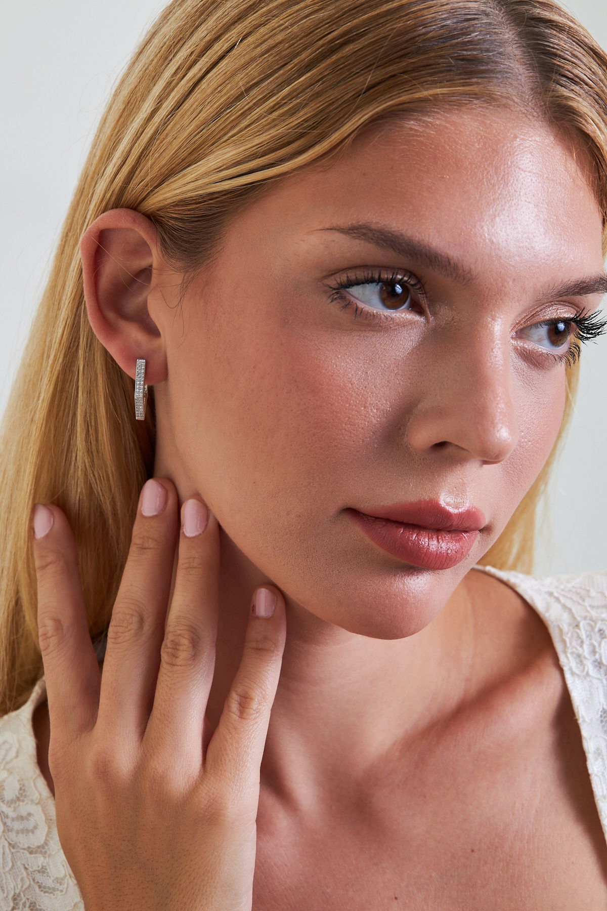 925 Ayar Gümüş Çift Sıra Taşlı Kadın Huggie Küpe VKP-7548 - Ventino