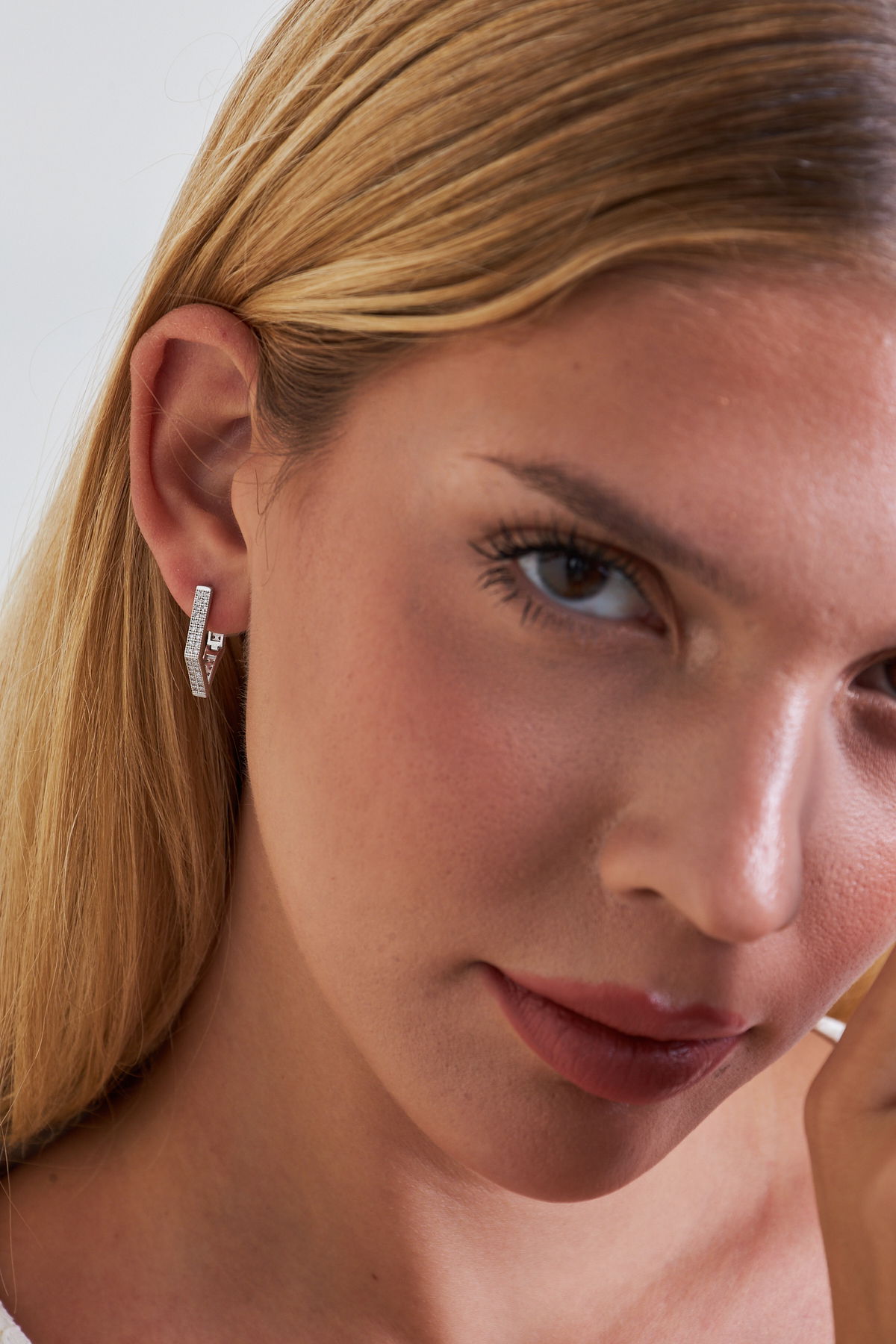 925 Ayar Gümüş Çapraz Kesim Formlu Taşlı Kadın Huggie Küpe VKP-7544 - Ventino