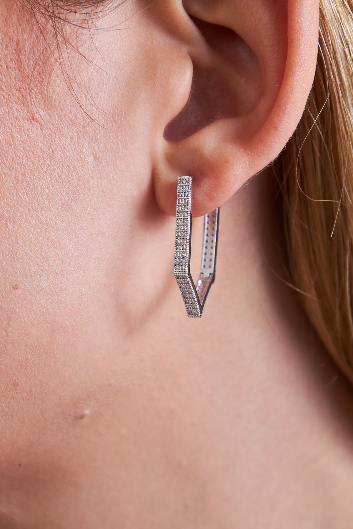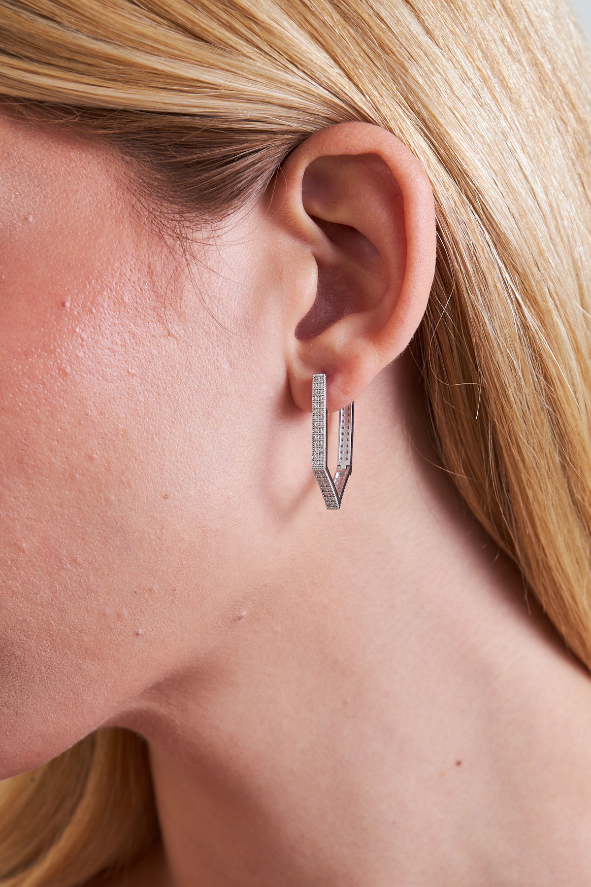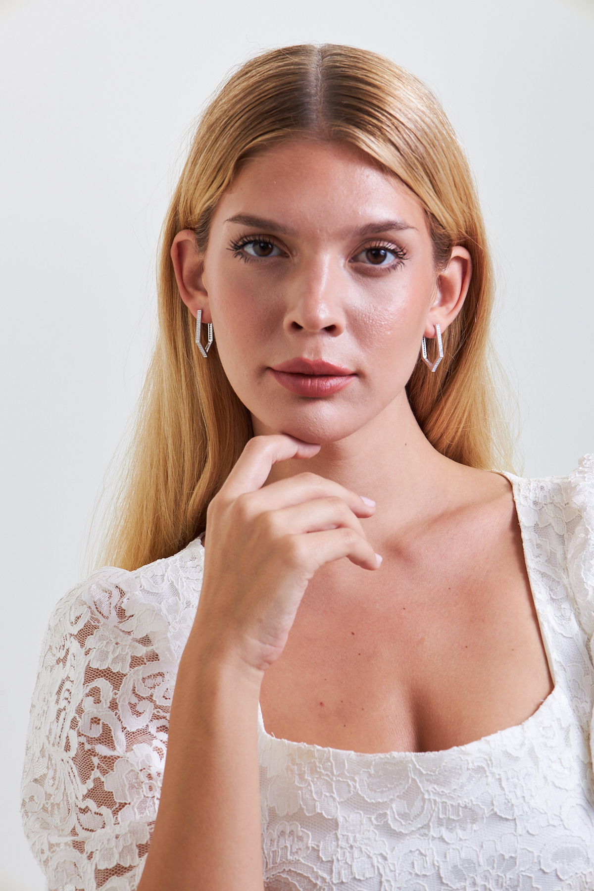 925 Ayar Gümüş Çapraz Kesim Formlu Taşlı Kadın Huggie Küpe VKP-7544 - Ventino