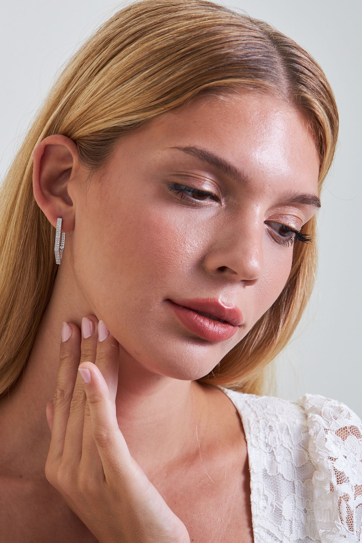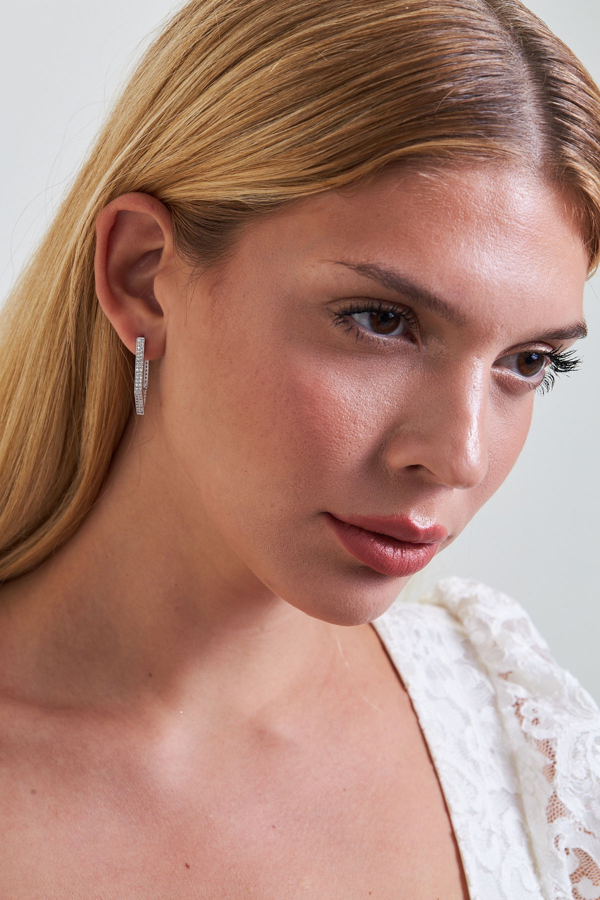 925 Ayar Gümüş Çift Sıra Taşlı Kadın Huggie Küpe VKP-7548 - Ventino